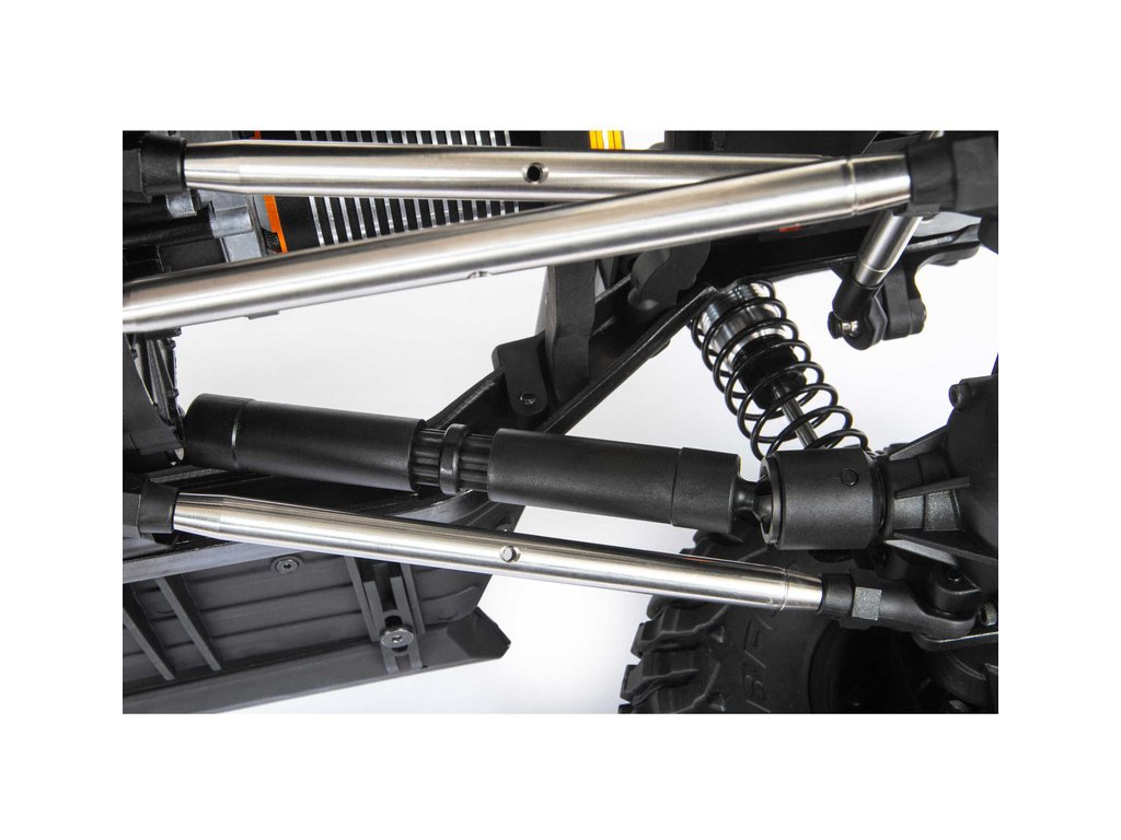 Pro optimální ovladatelnost je model na podvozku SCX6™ vybaveno odolným tří.bodovým předním a čtyř-bodovým zadním zavěšením náprav AR90. Nápravy mají pevností hřídele pro vysoké zatížení a zvládají jízdu v těžkém terénu.