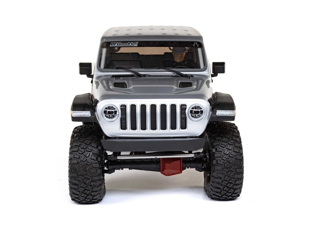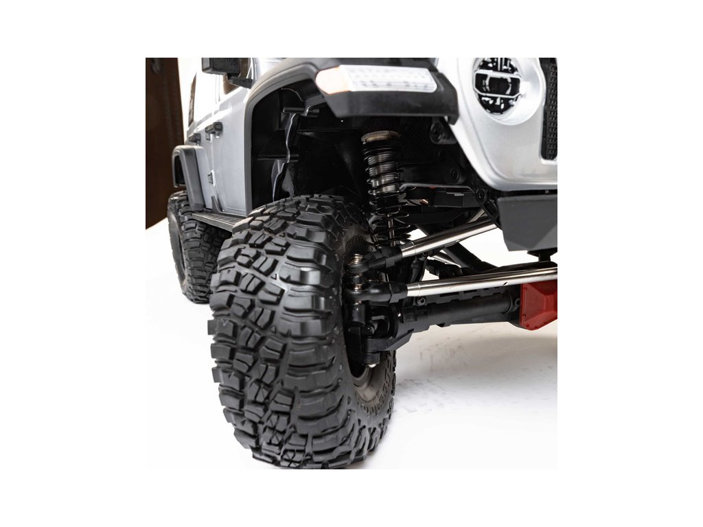 Masivní, 7" velké pneumatiky BFGoodrich® KM3 mají vynikající přilnavost a poskytují autu velkou světlou výšku pro jízdu přes kameny a všechny terénní nerovnosti. Jsou obuty na licencovaných, 3-dílných beadlock kolech Black Rhino Primm, takže pneumatiky lze snadno vyjmout, vysušit či vyměnit bez lepení. Nyní je SCX6™ Jeep® JLU Wrangler 4WD připraven vyrazit kamkoli a nabídnout vám skvělou zábavu.