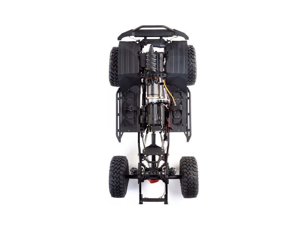 Masivní, 7" pneumatiky Falken Wildpeak M/T mají vynikající přilnavost a poskytují autu velkou světlou výšku pro jízdu přes kameny a všechny terénní nerovnosti. Pneumatiky jsou obuty na licencovaných, 3-dílných kolech Black Rhino Primm, takže vložky pneumatik lze snadno vyjmout, vysušit či vyměnit bez lepení.