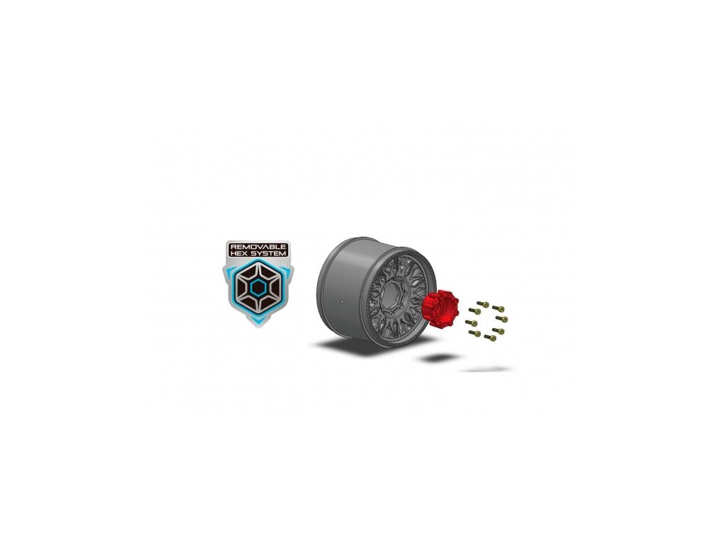 Systém odnímatelných hexů je nová funkce, která vám umožní vybrat si z různých středů, tak aby kola pasovala na vaše RC auto. Ty jsou součástí balení a lze je snadno nasadit a sejmout pomocí přiložených šroubků.