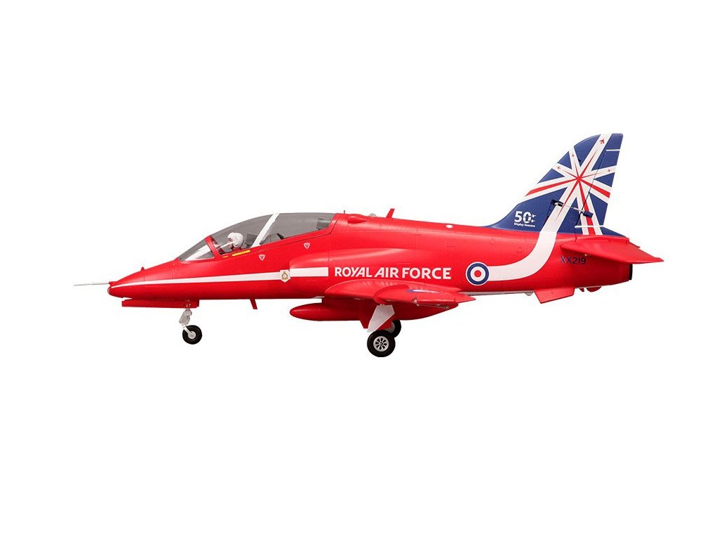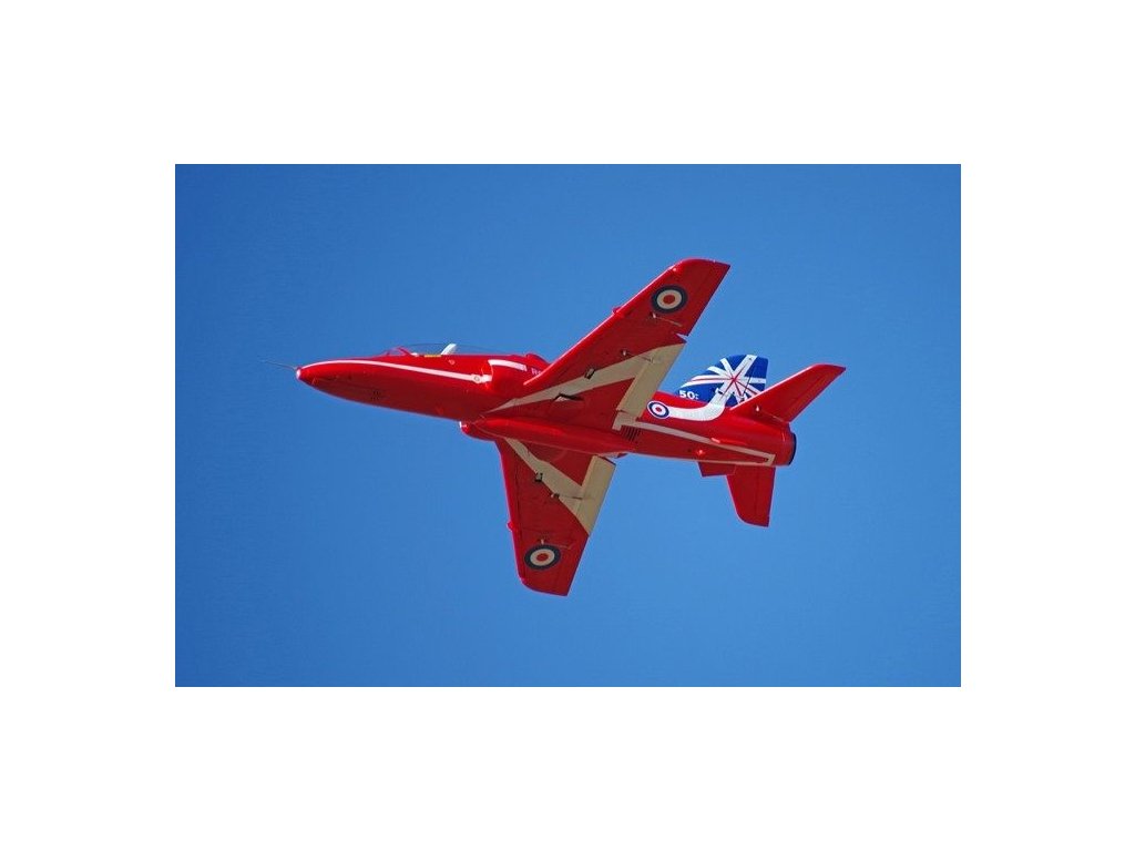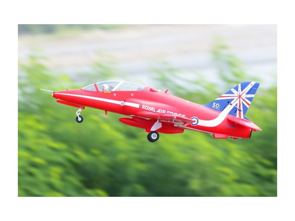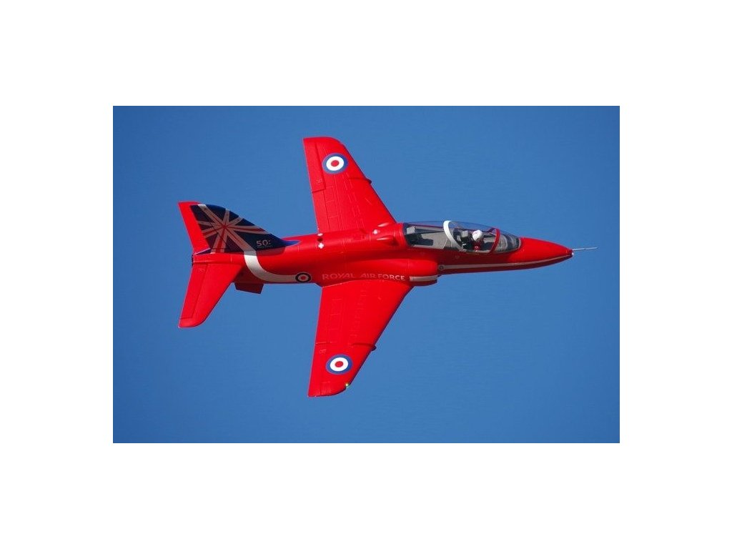 BAe Hawk je o něco mladší "kolega" našeho Albatrosu (prototyp vzlétl v roce 1974), s nímž sdílí velmi podobnou koncepci. Jediným zásadnějším rozdílem je mírně šípovité křídlo a především posunutí vstupních nasávacích otvorů daleko před náběžnou hranu křídla - britští soudruzi se tak vyhnuli problémům, se kterými zápolily ranné L-39. Na rozdíl od Albatrosu se Hawk v modernizovaných variantách vyrábí dodnes; jako licenční McDonnell Douglas T-45 Goshawk opatřený závěsem pro katapult a přistávacím hákem slouží dokonce k výcviku pilotů amerického námořnictva a námořní pěchoty. Stroj ve stavebnici představuje Hawk v barvách akrobatické skupiny Královského letectva, legendárních Red Arrows.