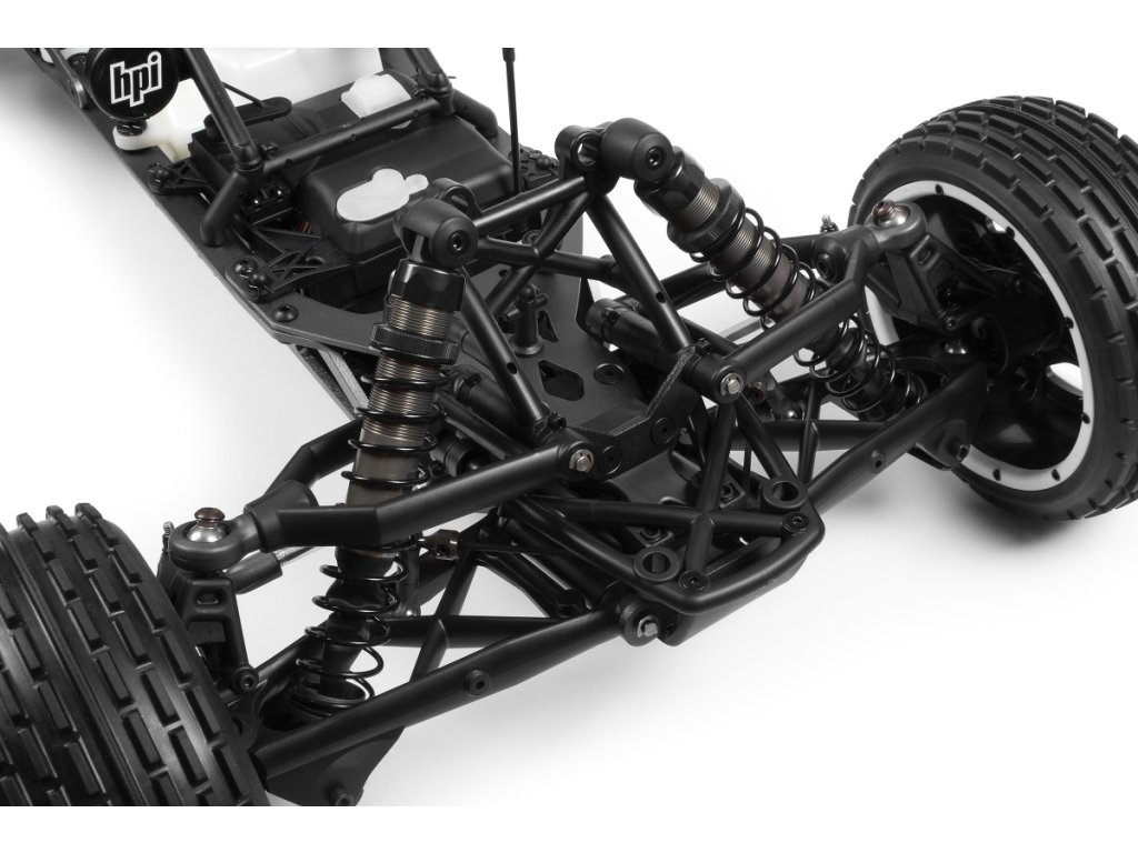 Jak HPI Baja 5B, tak Baja 5B FLUX jsou vybaveny extra velkými a odolnými podvozkovými komponenty! Se svým odborně navrženým kompozitovým zavěšením, extra dlouhými nastavitelnými HD tlumiči a obřími nárazu-odolnými nylonovými koly, je Baja 5B připravena k závodění na jakékoliv off-roadové dráze!