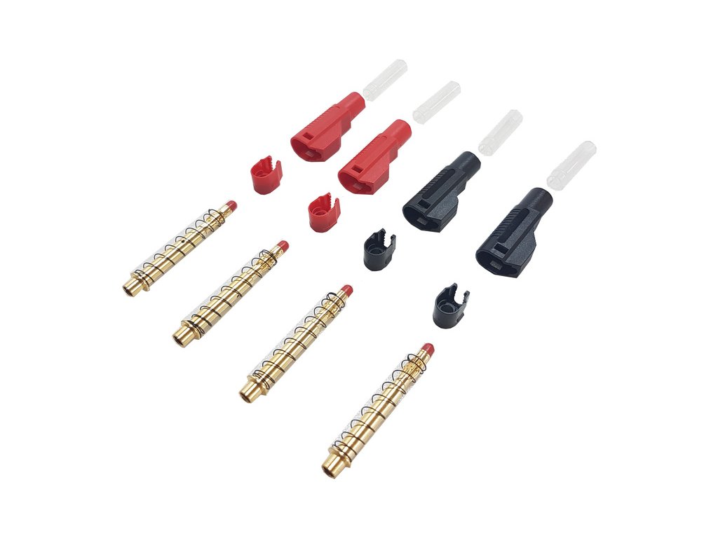 Banánky zlacené s kolíky 4mm a bezpečnostnostním izolačním krytem (2 páry v balení).