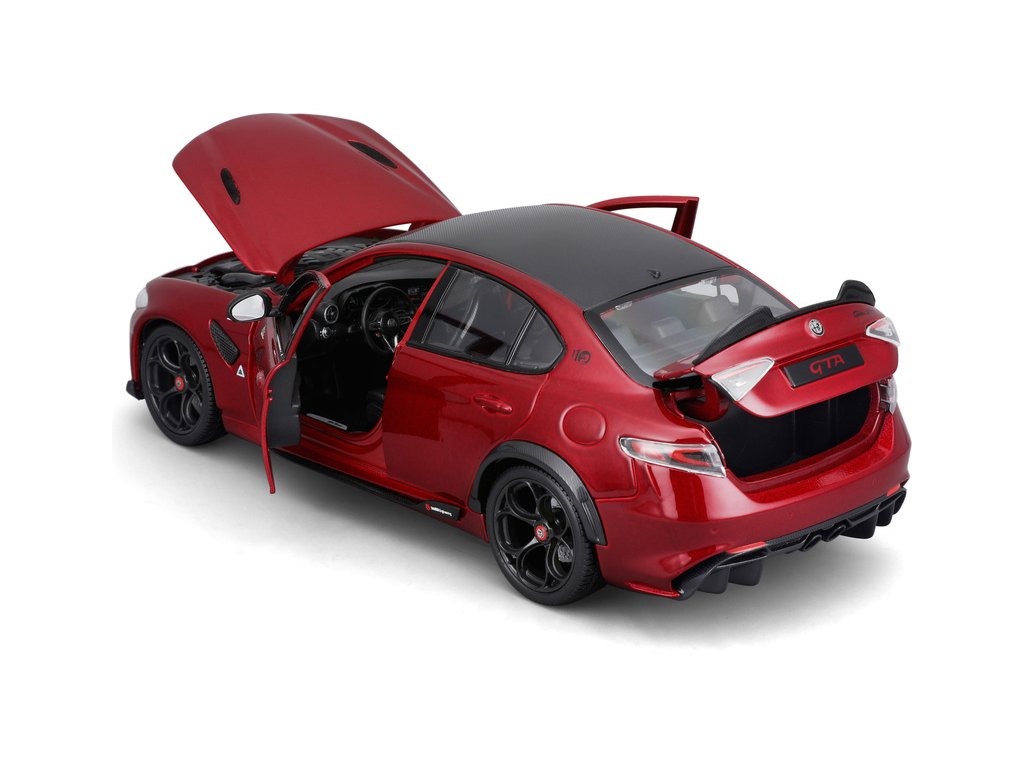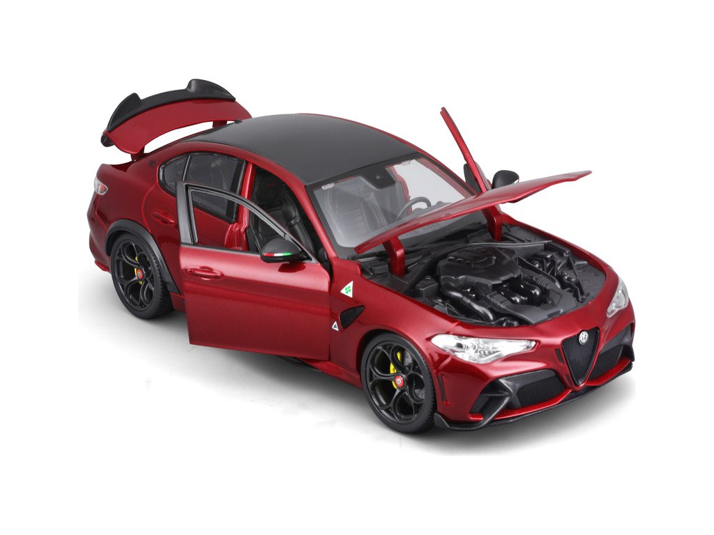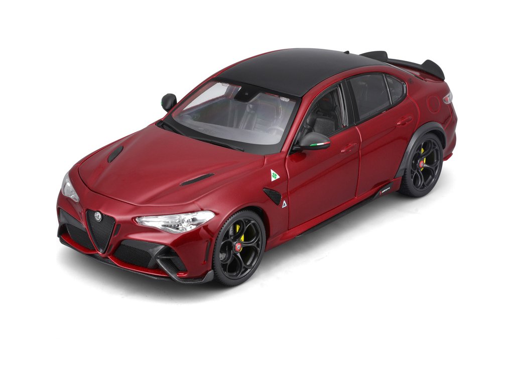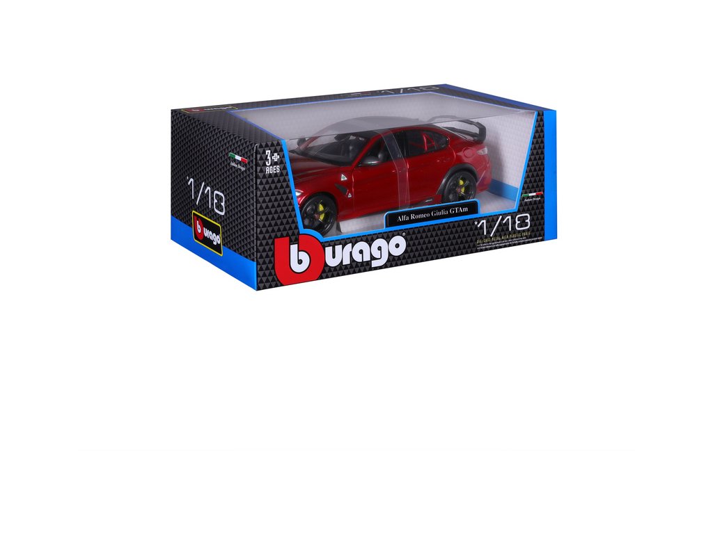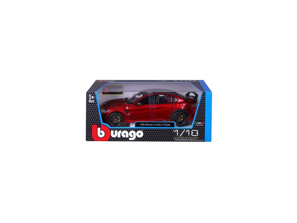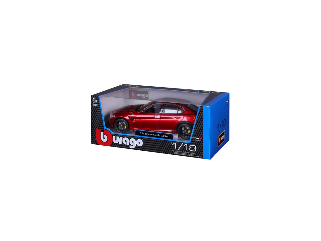 Kovový model Bburago Alfa Romeo Giulia GTAm v měřítku 1:18 nejen pro sběratele. Detailní provedení, přívětivá cena, barva červená metalíza, délka přibližně 24 cm.