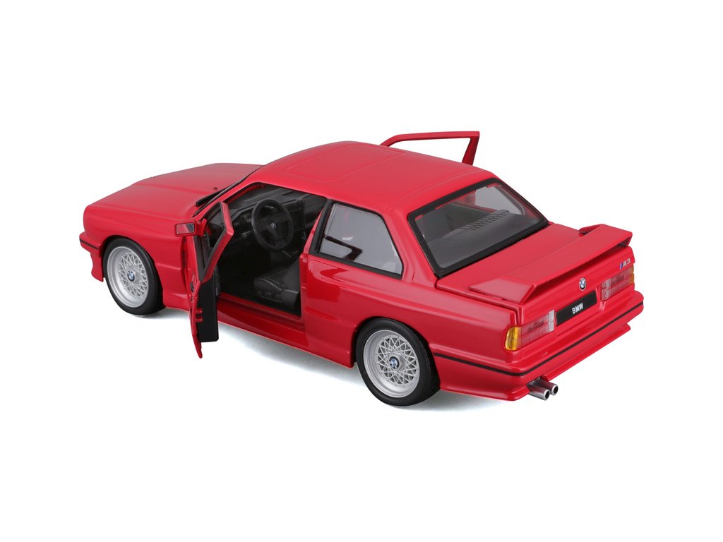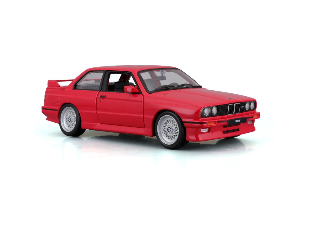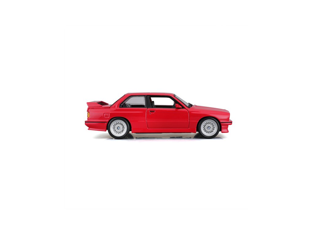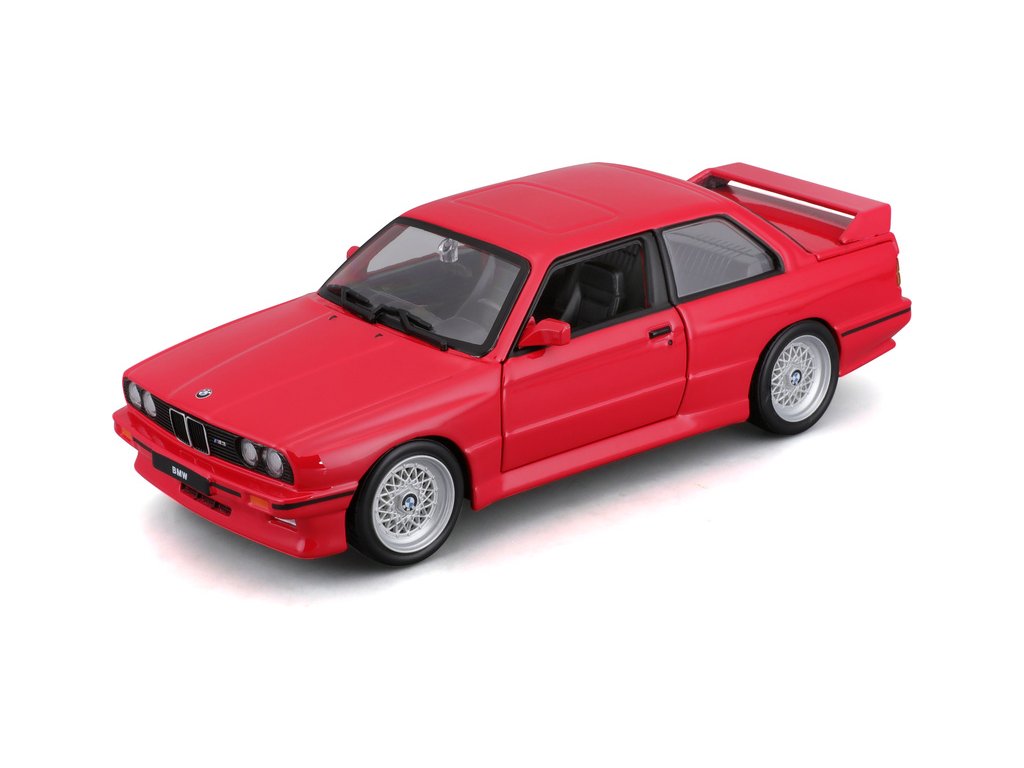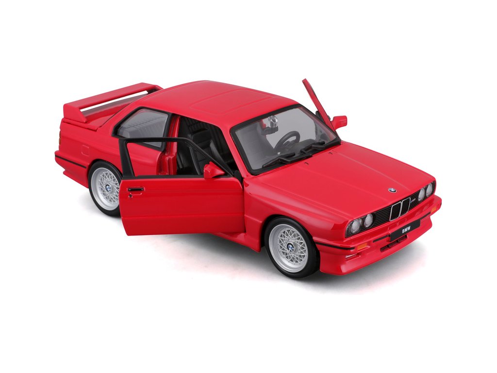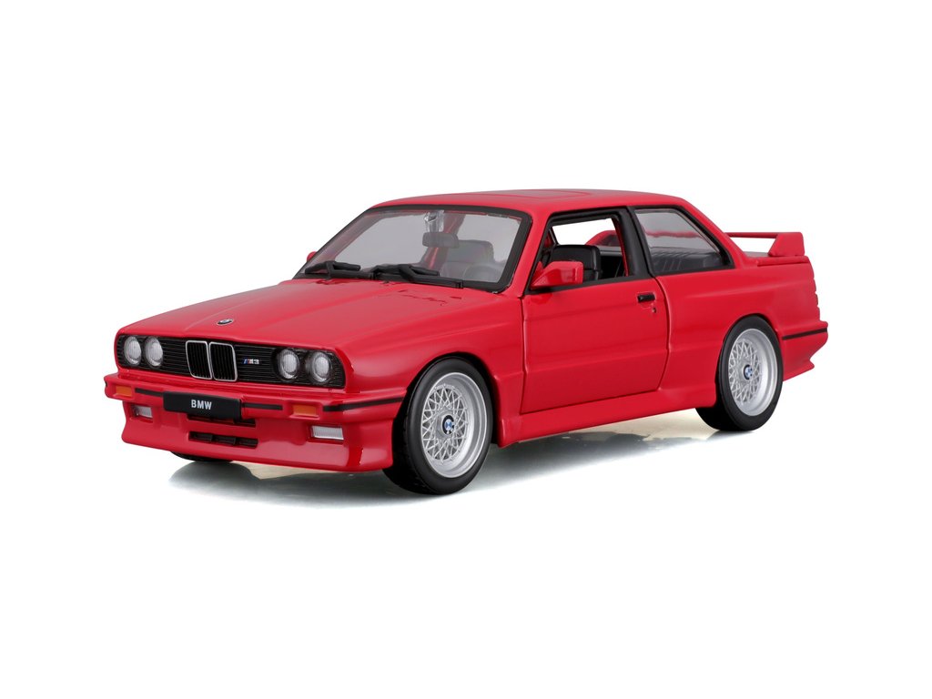 Kovový model auta 1:24 Bburago 18-21100 BMW 3 Series M3 1988 nejen pro sběratele. Má otevírací dveře, barva modelu je červená.