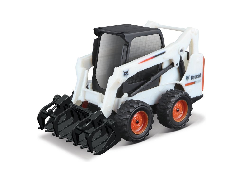 Kovový model pracovního stroje Bburago 18-31802 - Bobcat S590 s drapákem. Je vyroben z kovových a plastových dílů. Model má pohyblivé rameno s drapákem, pryžové pneumatiky, detailní zpracování. Barvu má bílo-černou.
