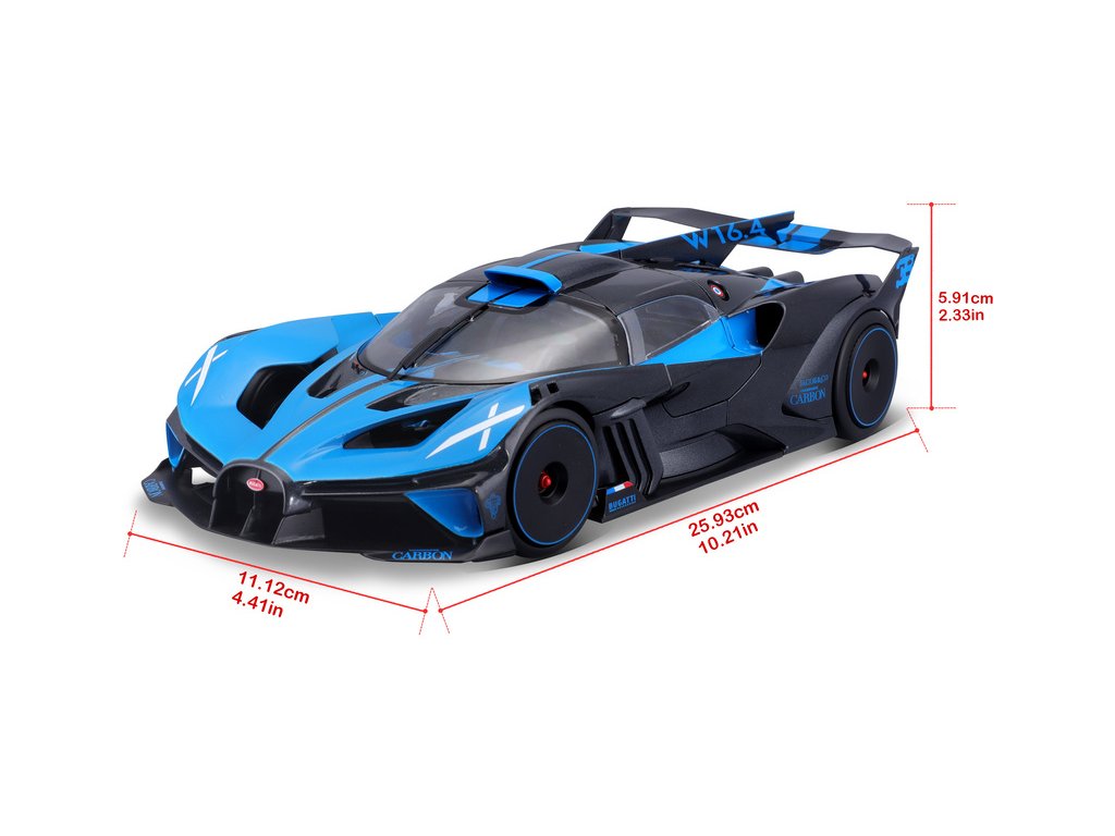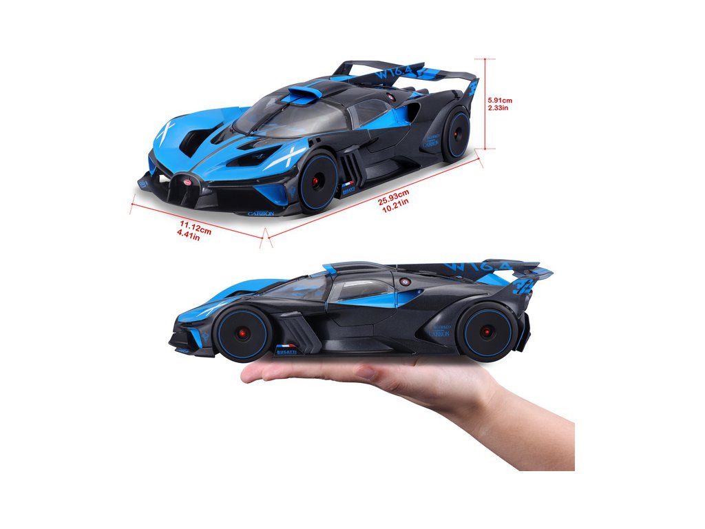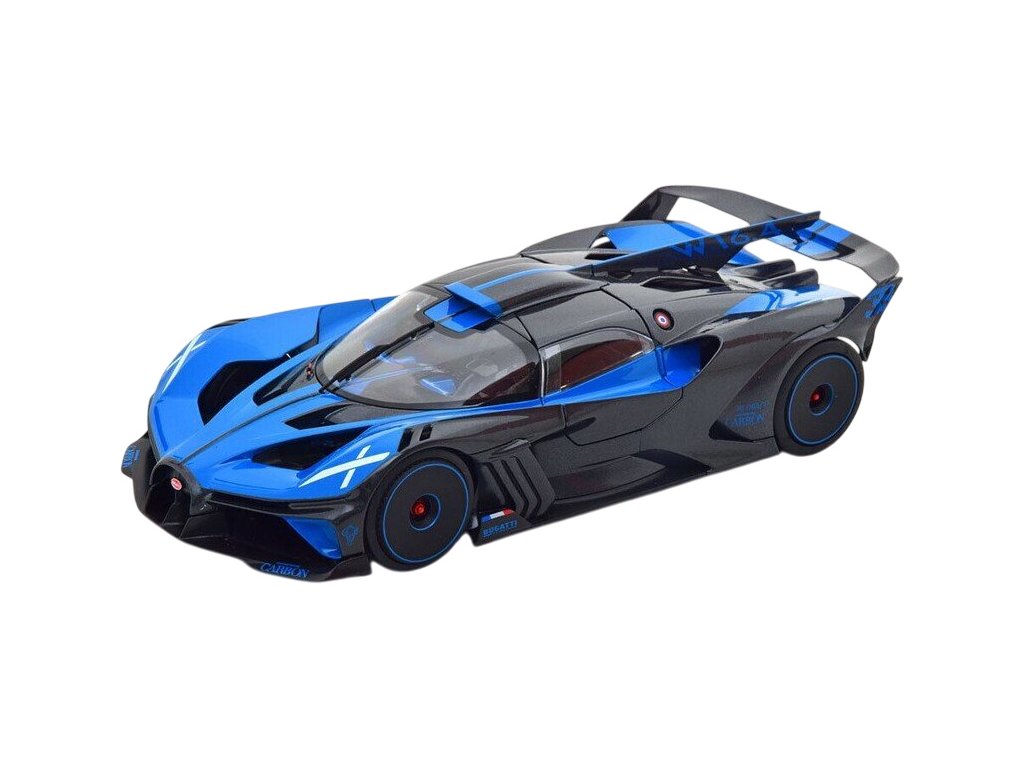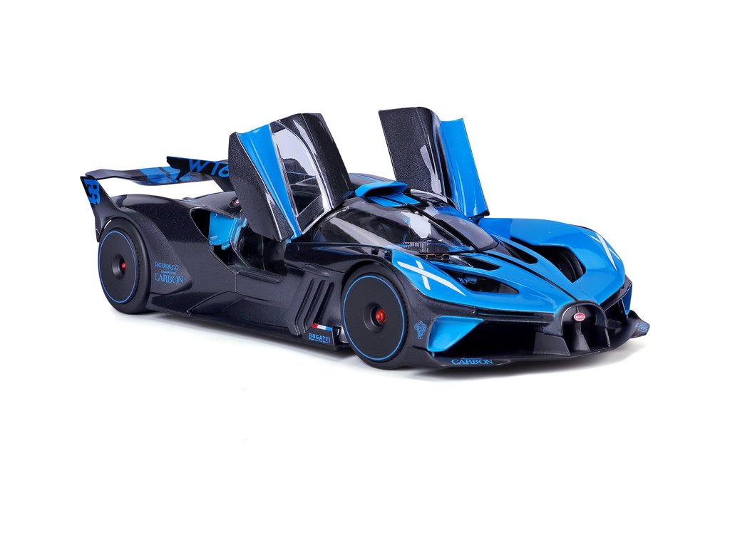 Kovový model auta 1:18 Bburago 18-11047 Bugatti Bolide nejen pro sběratele. Má otevírací dveře. Barva modelu je modrá a je přibližně 24 cm velký.