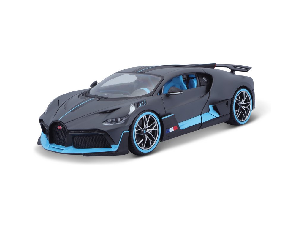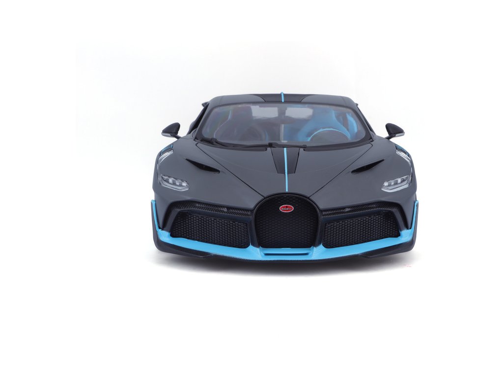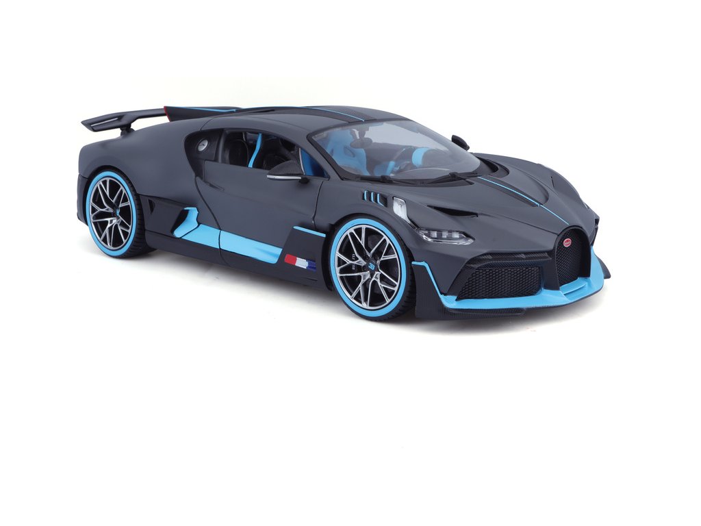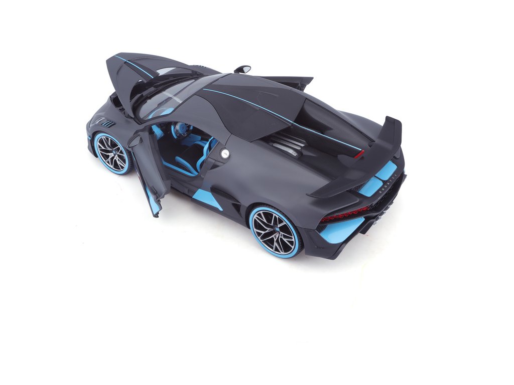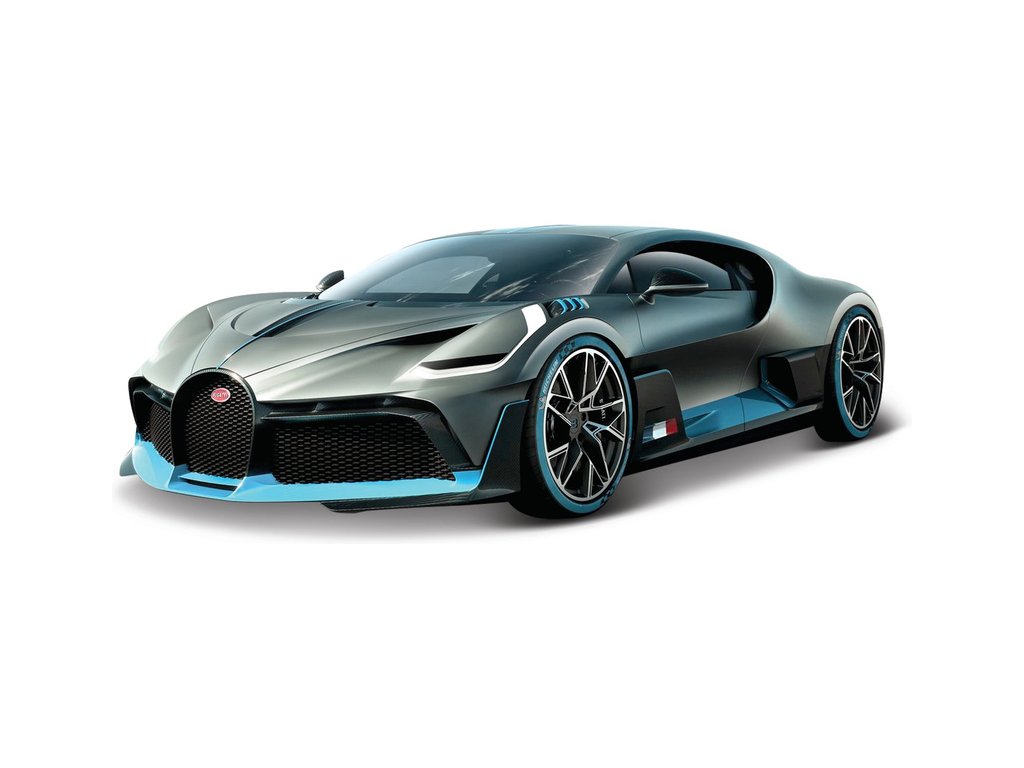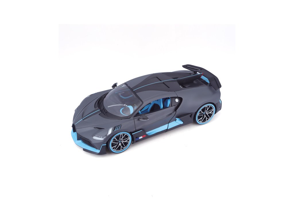 Kovový model auta 1:18 Bburago 18-11045 Bugatti Divo nejen pro sběratele. Má otevírací dveře a kapotu, otočná kola. Barva modelu je stříbrná a je přibližně 24 cm velký.