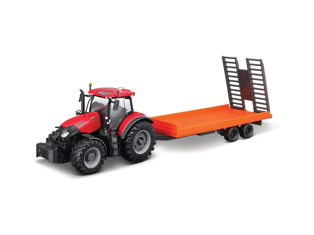 Model zemědělského traktoru Bburago 18-31687 - Case IH Optum CVX 300 s vozíkem. Je vyroben z kovových a plastových dílů. Model má pryžové kolečka a detailní zpracování. Model v červené barvě je přibližně 10 cm velký.