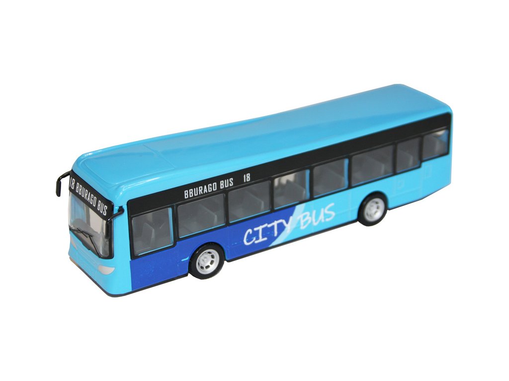 Kovový model dopravní techniky Bburago 18-32102 - City Bus v měřítku 1:50 je vyroben z kovových a plastových dílů. Model má pryžové kolečka, otevíratelné dveře, je v detailním zpracování. Barva modelu je modrá a je dlouhý 19,5 cm.