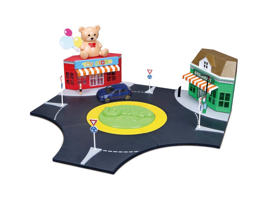 Ke každému výjezdu z kruhového objezdu si můžete umístit jakoukoli budovu se série Bburago City. Díky jednotlivým stavebním dílům si vytvoříte město s cestou jako ve skutečnosti.