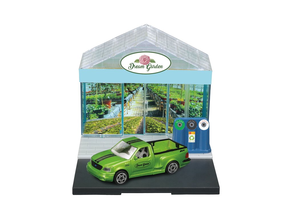 Herní set Bburago 18-31511 City - zahradní domek s autíčkem Ford SVT F150 Lightning v měřítku 1:43 ( přibližně 10 cm velké ) pro malé milovníky aut. Set umožní malým řidičům doplnit nebo vytvořit si vlastní městečko. Balení obsahuje plastovou maketu zahradního domku, autíčko.