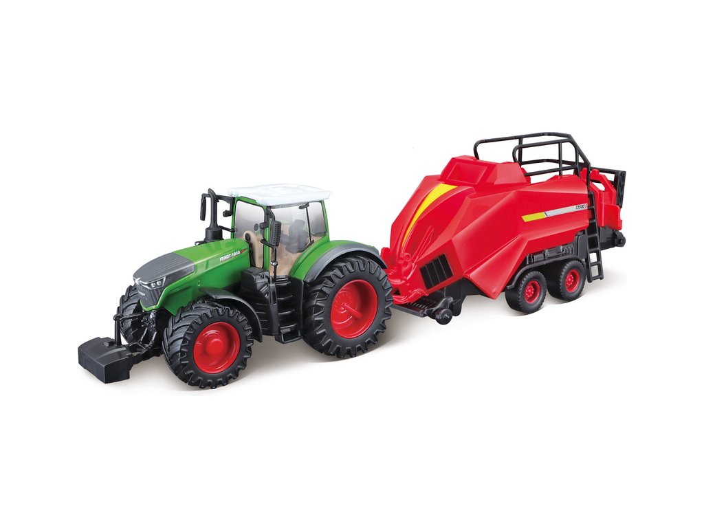 Model zemědělského traktoru Bburago 18-31663 - Fendt 1050 Vario s lisem na balíky. Je vyroben z kovových a plastových dílů. Model má pryžové kolečka a detailní zpracování. Model v zelené barvě je přibližně 13 cm velký.