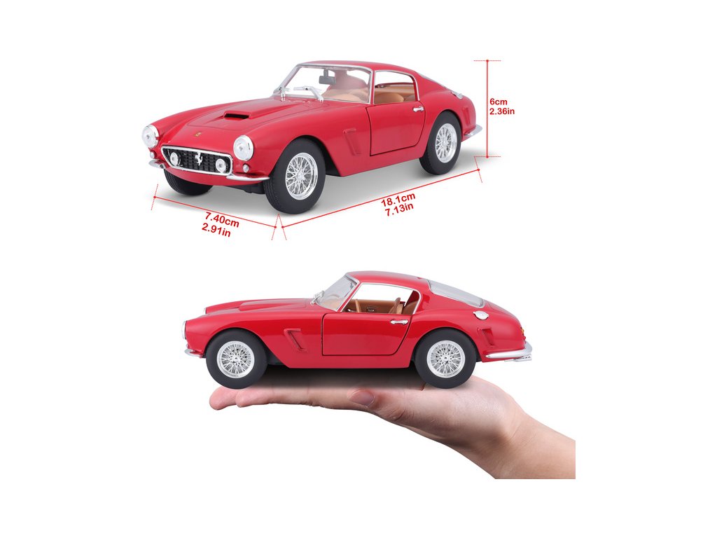 Kovový model auta 1:24 Bburago 18-26025 Ferrari 250 GT Berlinetta nejen pro sběratele. Má otevírací dveře. Barva modelu je červená a je přibližně 17 cm velký.