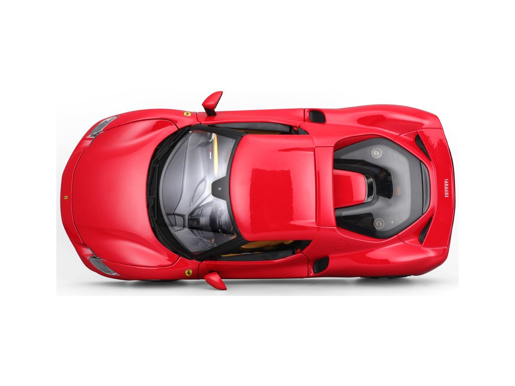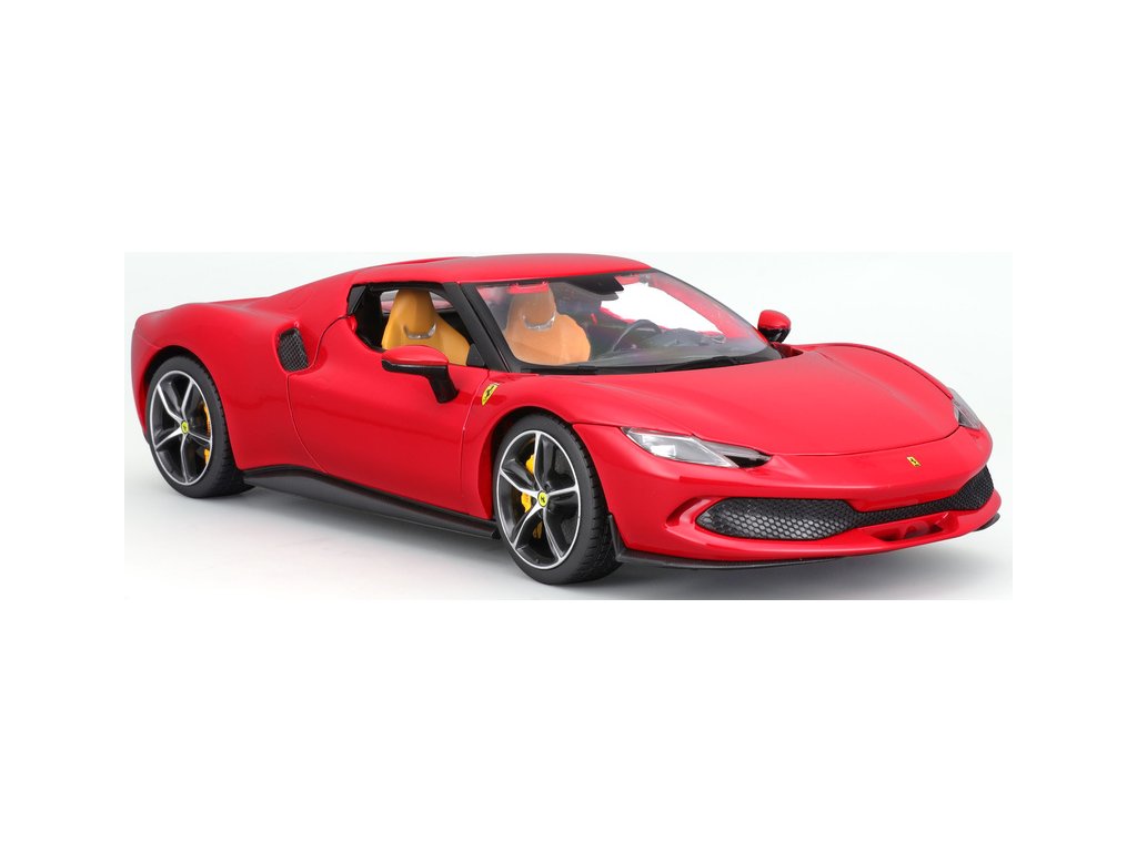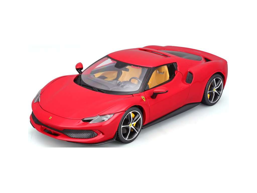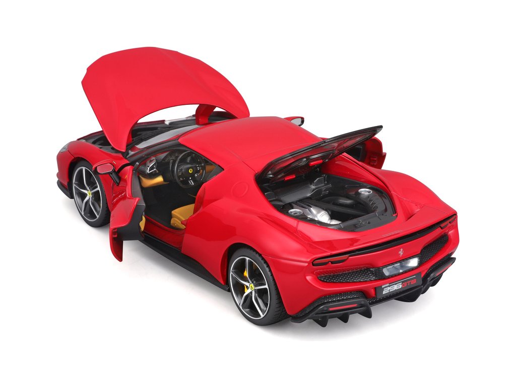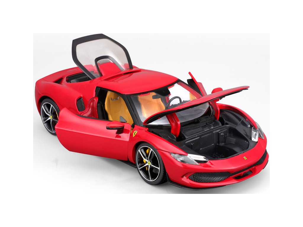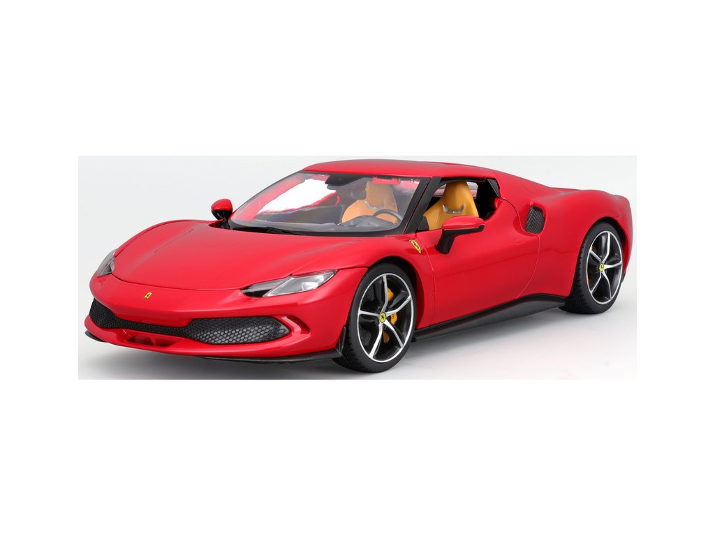 Kovový model auta 1:18 Bburago 18-16018RD Ferrari 296 GTB, nejen pro sběratele. Model je v detailním provedení. Barva modelu je červená a přibližně 24 cm velký.