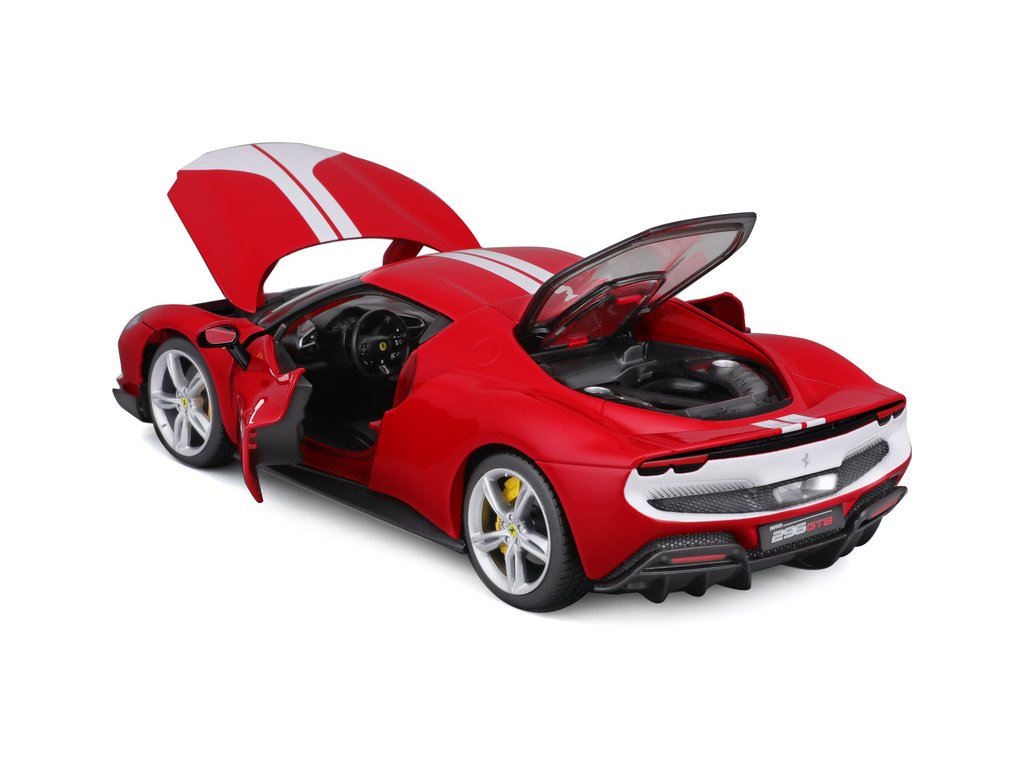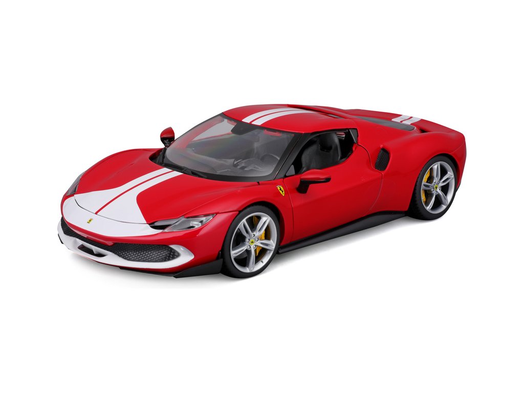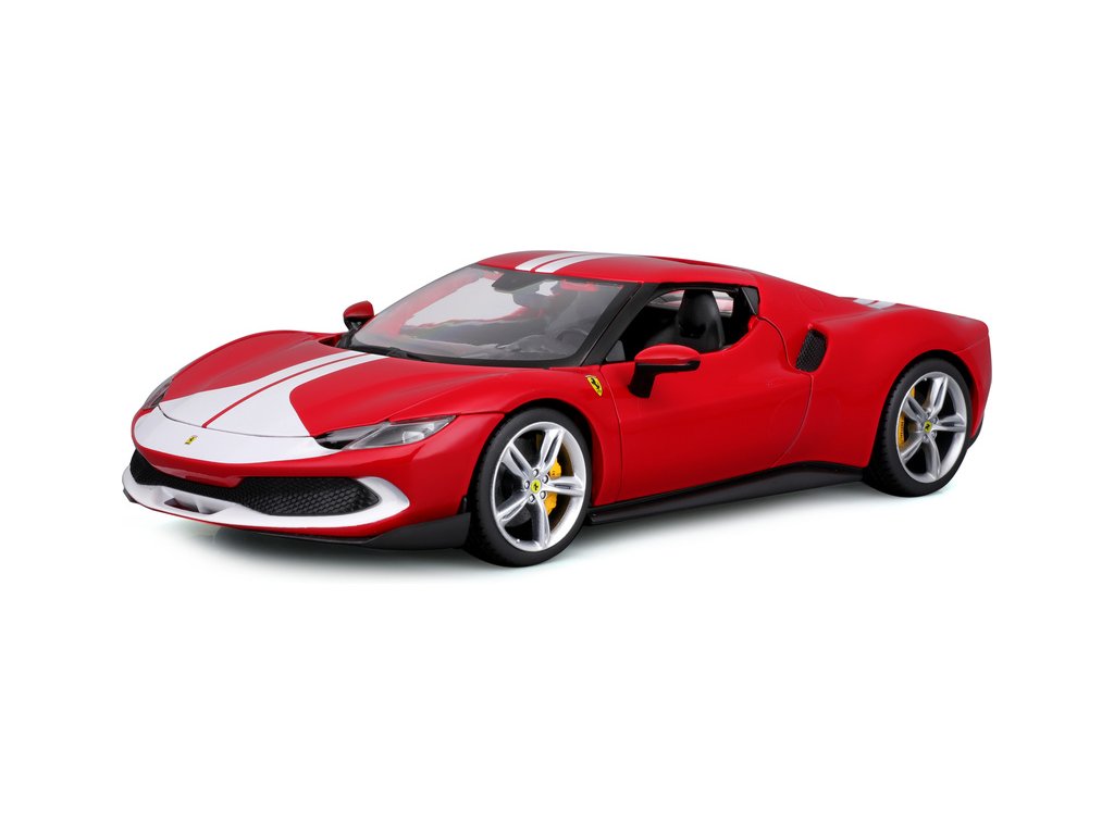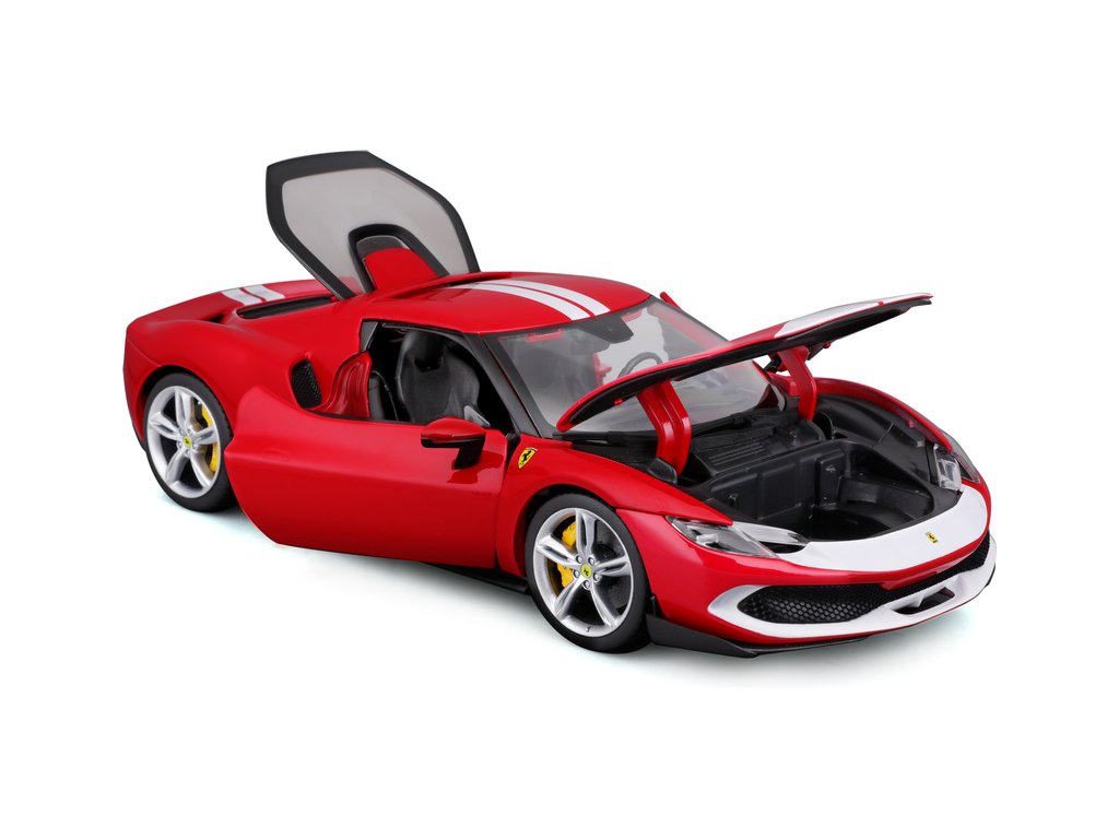 Kovový model auta 1:18 Bburago 18-16017RD Ferrari 296 GTB Assetto Fiorano, nejen pro sběratele. Model je v detailním provedení. Barva modelu je červená a přibližně 24 cm velký.