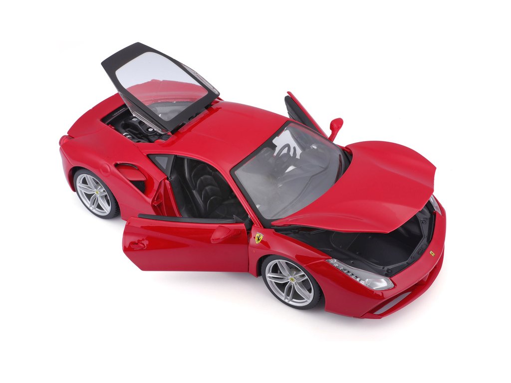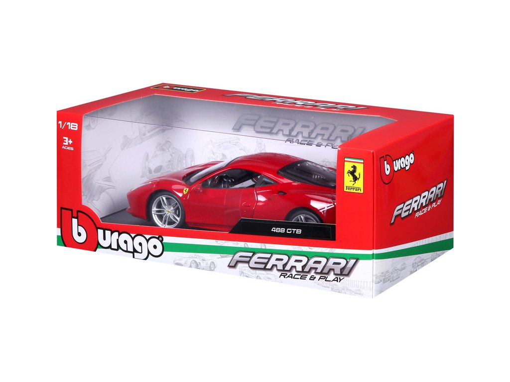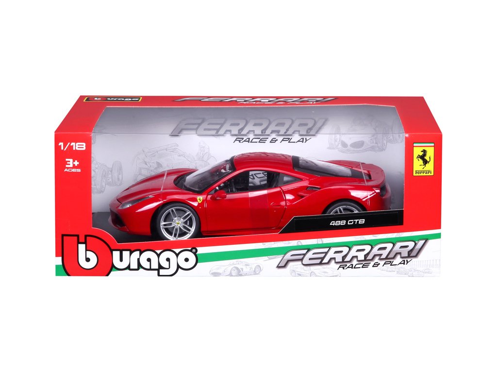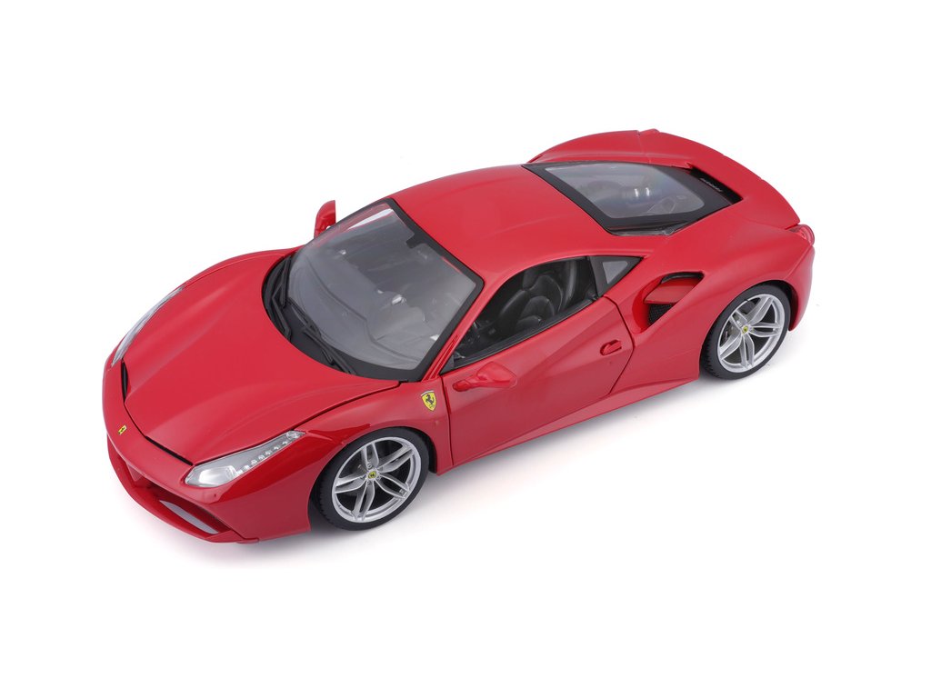 Kovový model auta 1:18 Bburago 18-16008 Ferrari 488 GTB nejen pro sběratele. Má otevírací dveře a kapotu, odpružené nápravy, natáčení kol volantem je plně funkční. Barva modelu je červená Ferrari.