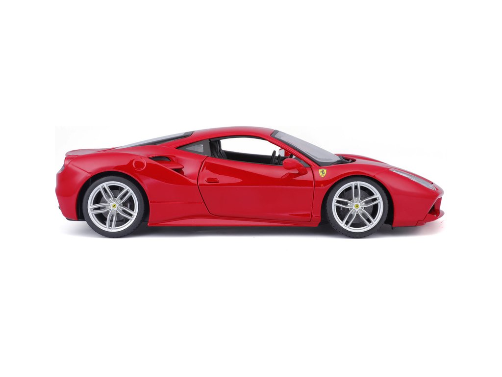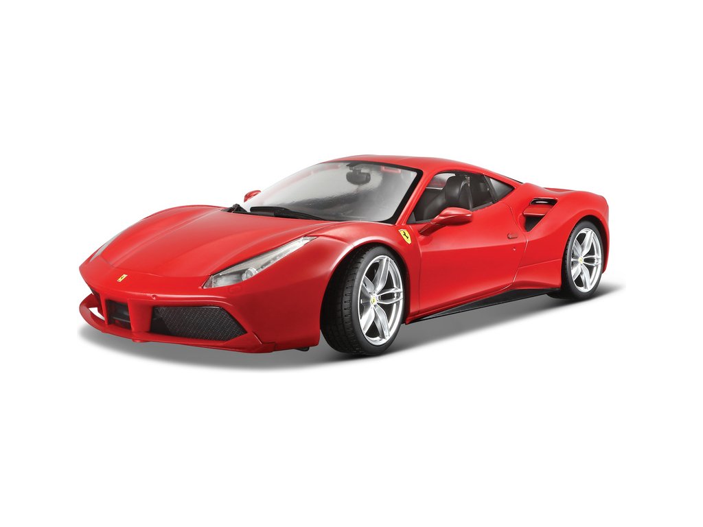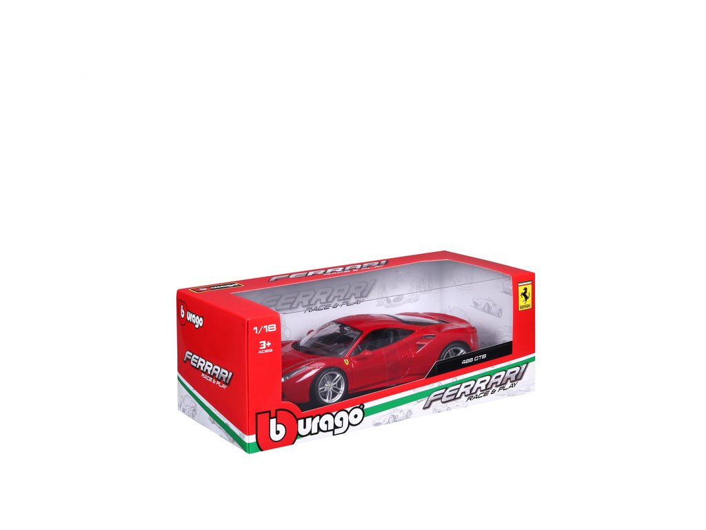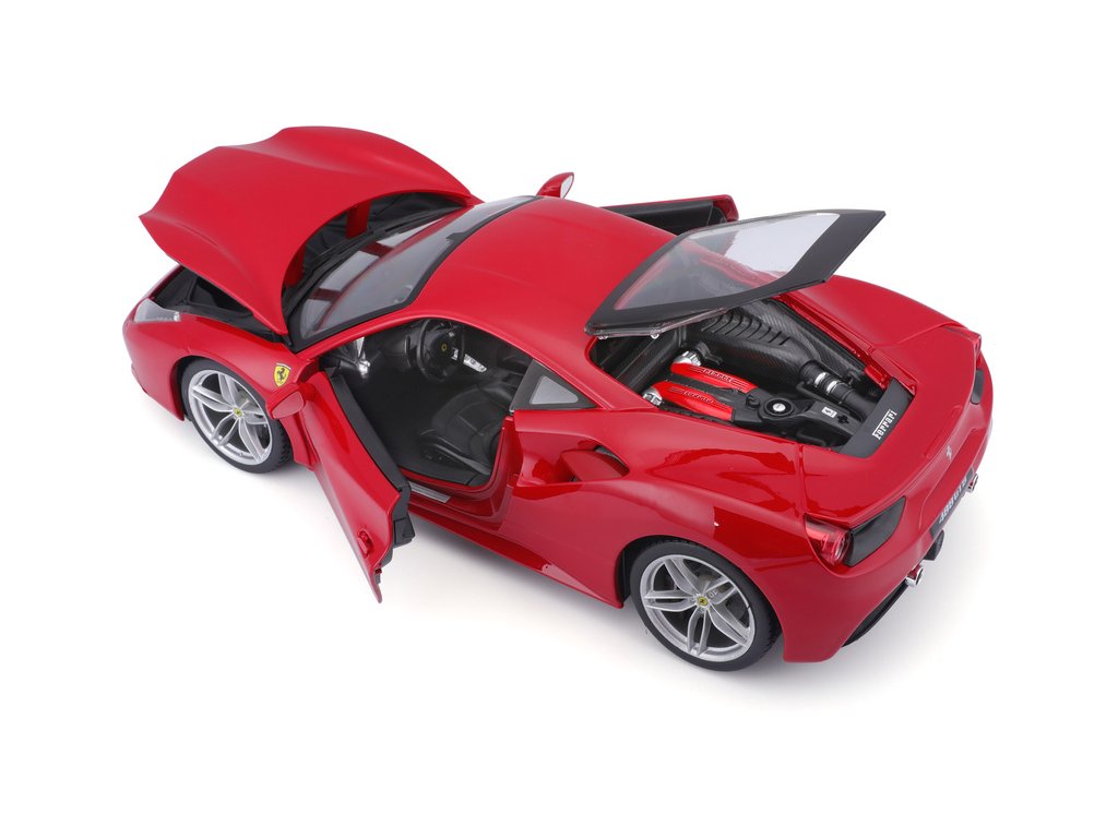 Kovový model auta 1:18 Bburago 18-16008 Ferrari 488 GTB nejen pro sběratele. Má otevírací dveře a kapotu, odpružené nápravy, natáčení kol volantem je plně funkční. Barva modelu je červená Ferrari.