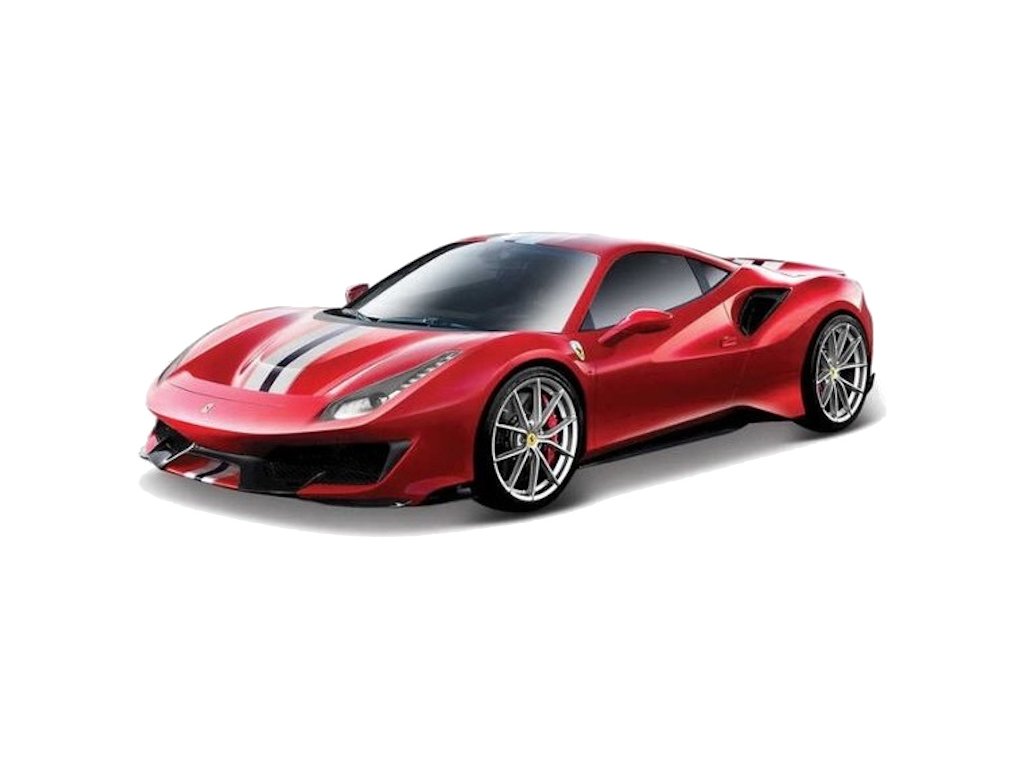 Kovový model auta Bburago BB18-26026 Ferrari 488 Pista v měřítku 1:24 v červené barvě. Model má otevírací dveře a je v detailním provedení. Model je přibližně 19 cm velký.