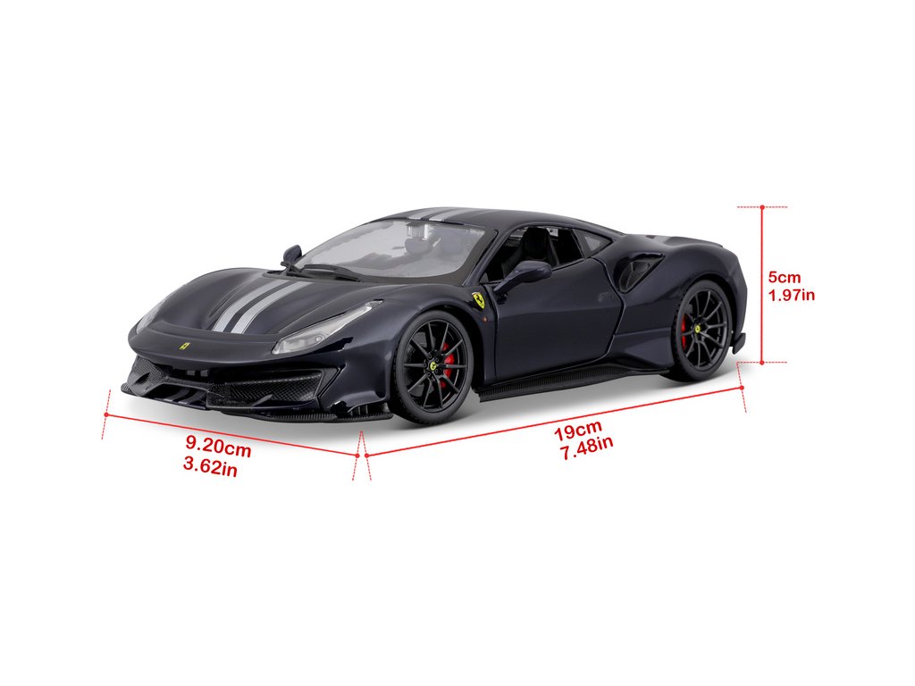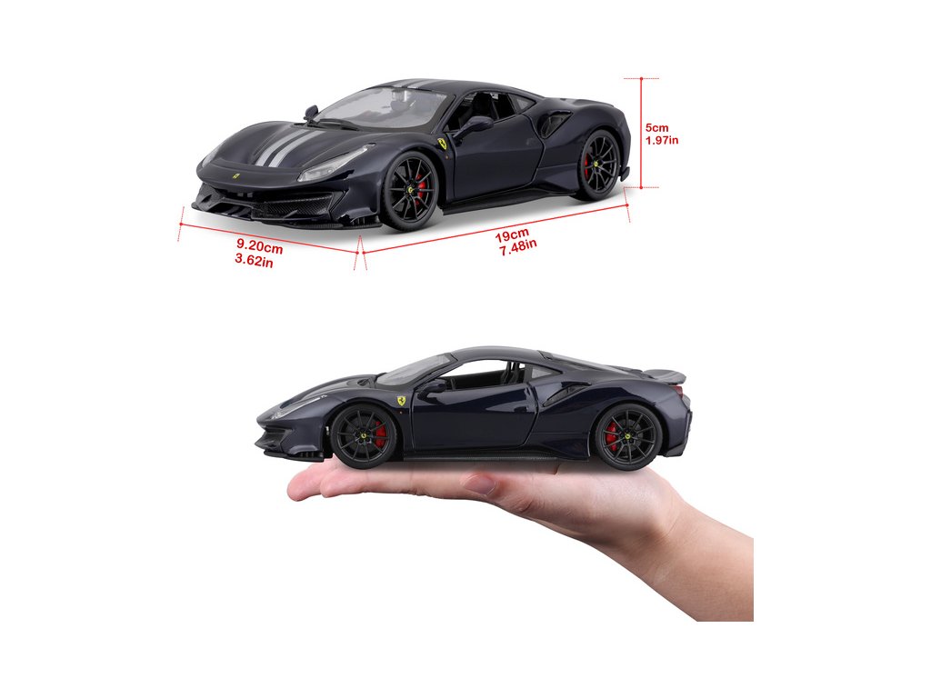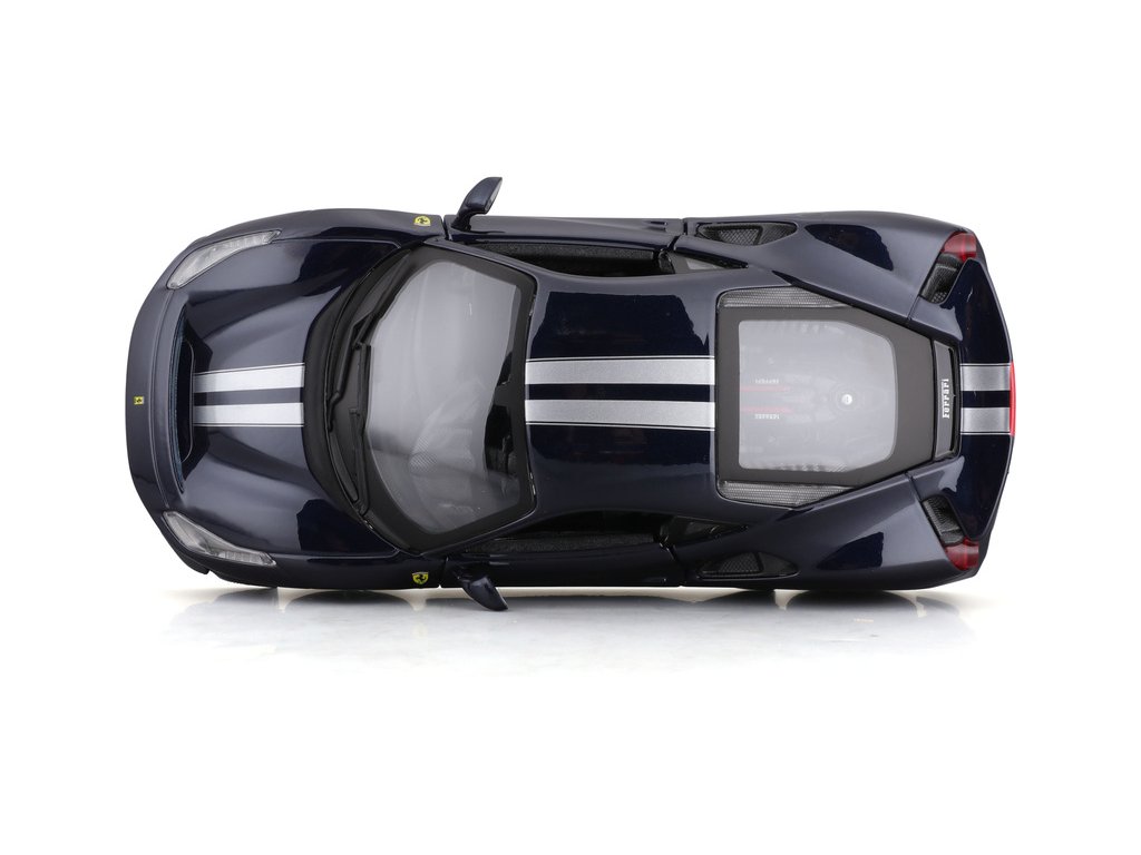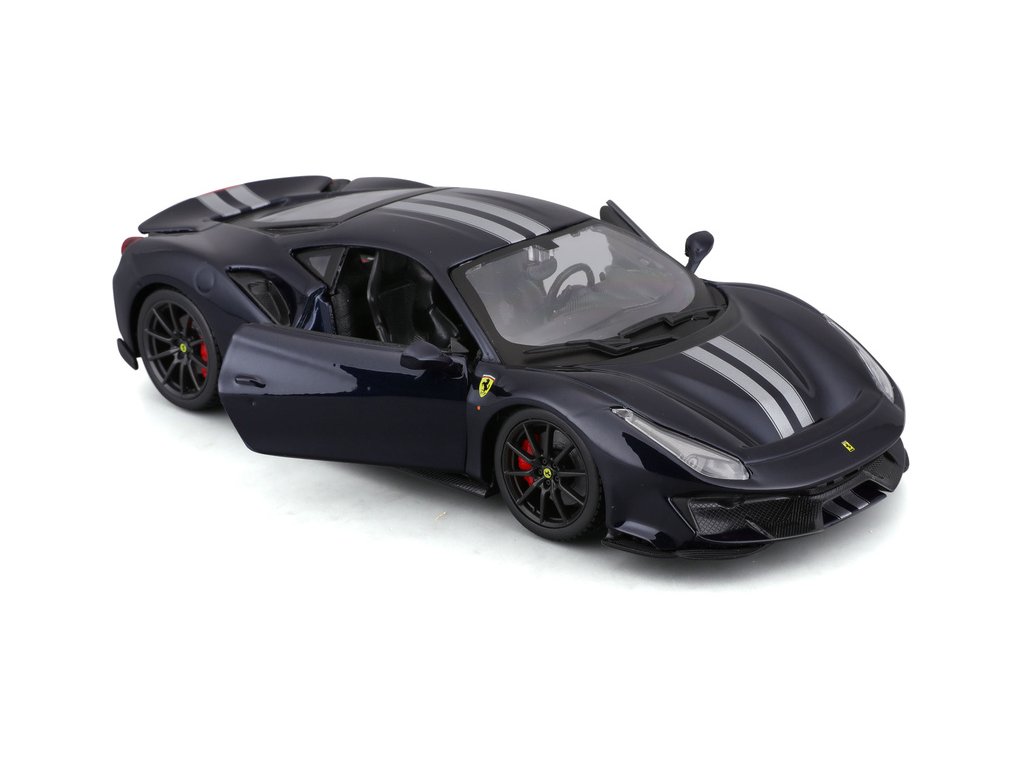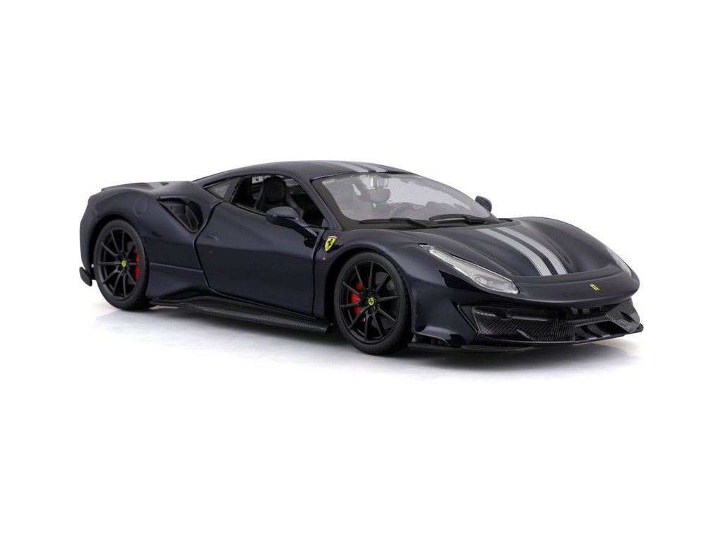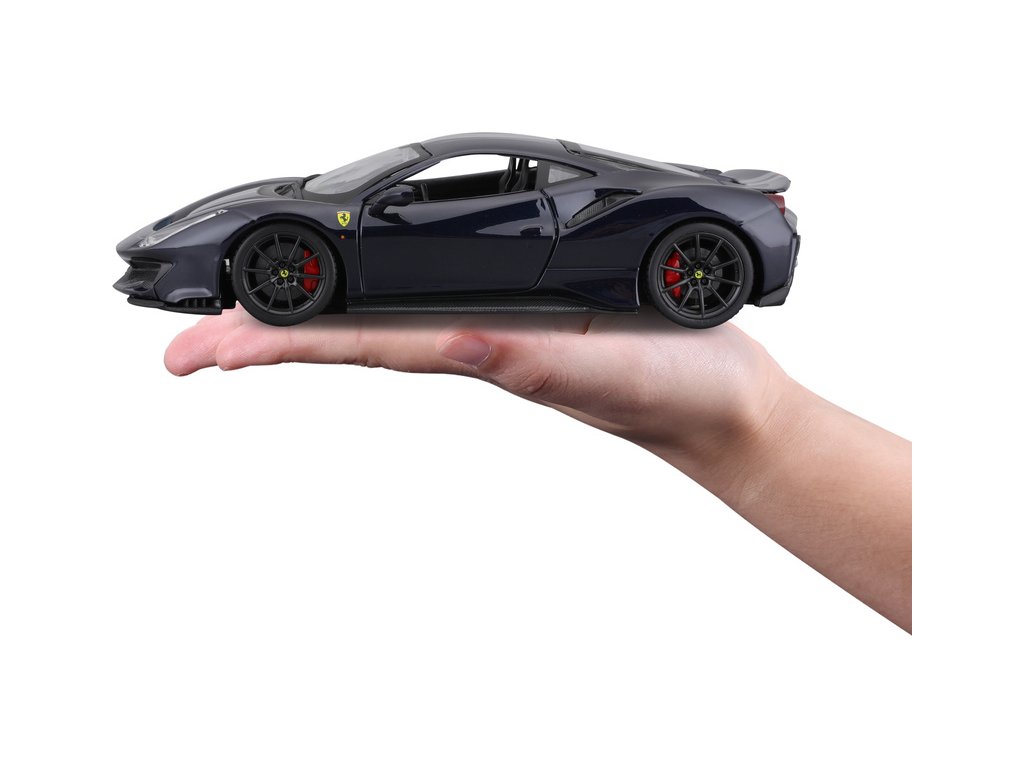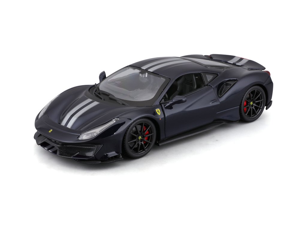Kovový model auta Bburago BB18-26026 Ferrari 488 Pista v měřítku 1:24 je nejen po sběratele. Barva modelu je tmavě modrá. Model má otevírací dveře a je v detailním provedení.