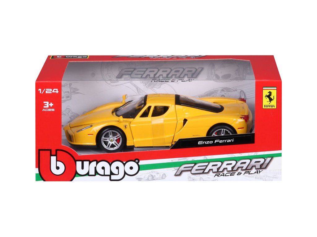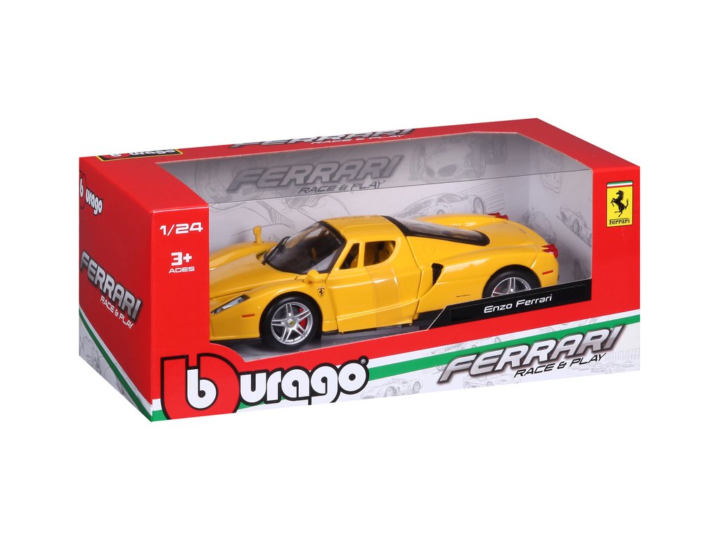 Kovový model auta 1:24 Bburago 18-26006YL Ferrari Enzo nejen pro sběratele. Model je ve špičkové kvalitě. Barva modelu je žlutá a je přibližně 18 cm velký.