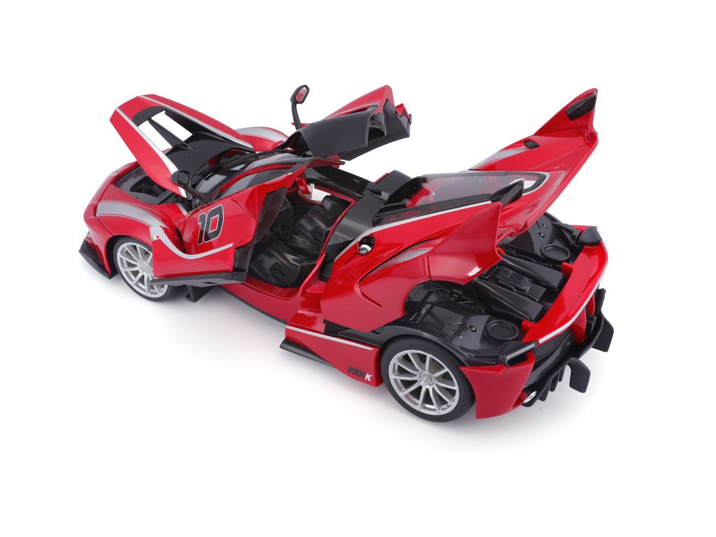 Kovový model auta 1:18 Bburago 18-16010 Ferrari FXX K nejen pro sběratele. Má otevírací dveře a kapotu, odpružené nápravy. Model je ve špičkové kvalitě Barva modelu je červená metalická.