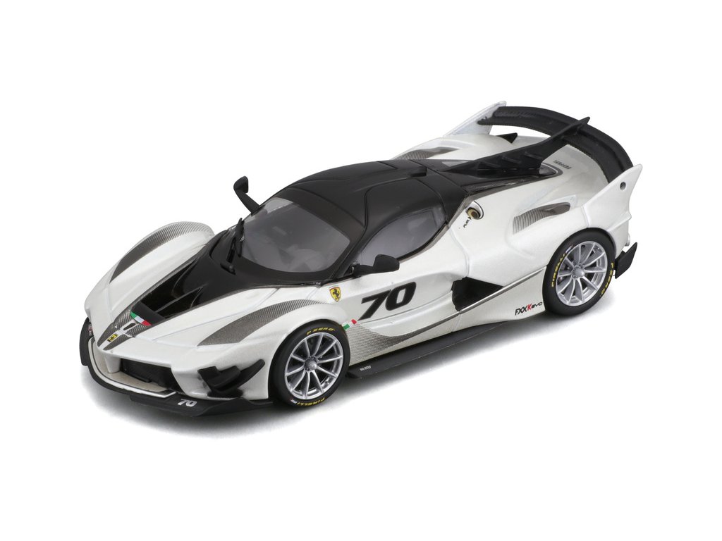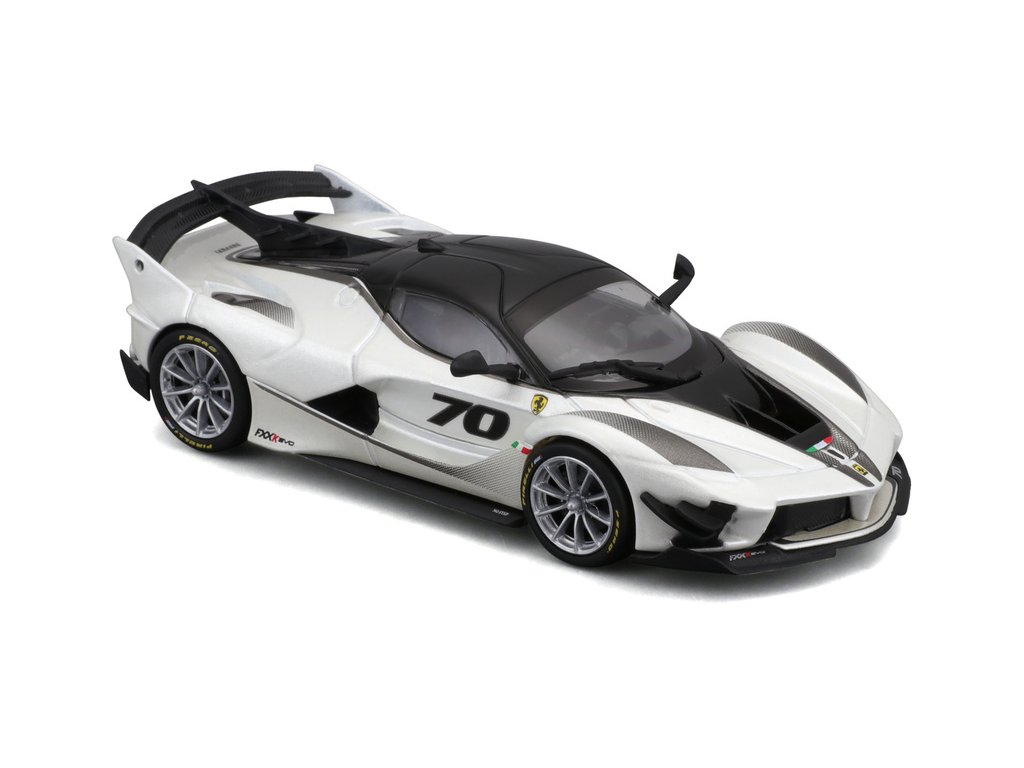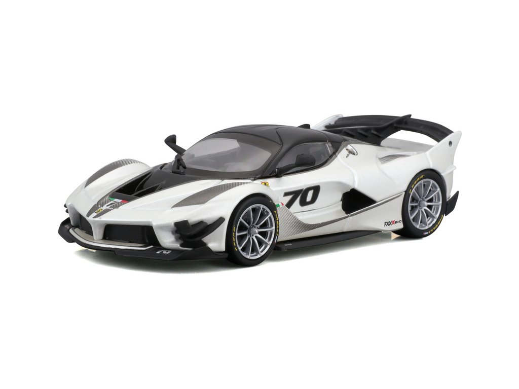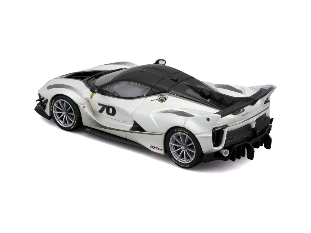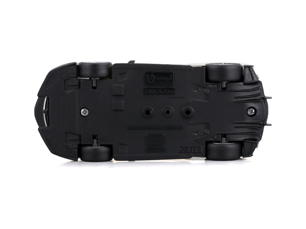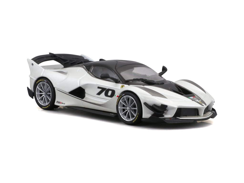 Kovový model auta 1:43 Bburago 18-36311 Ferrari FXX-K EVO 2017 nejen pro sběratele. Barva modelu je bílo-černá a je přibližně 10 cm velký.