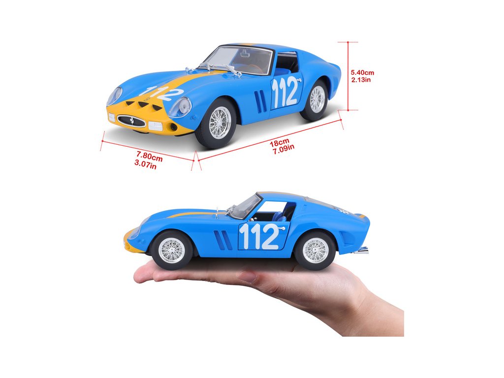 Kovový model auta 1:24 Bburago 18-26581 Ferrari GTO 250 nejen pro sběratele. Model je ve špičkové kvalitě. Barva modelu je modrá a je přibližně 18 cm velký. V provedení KIT.