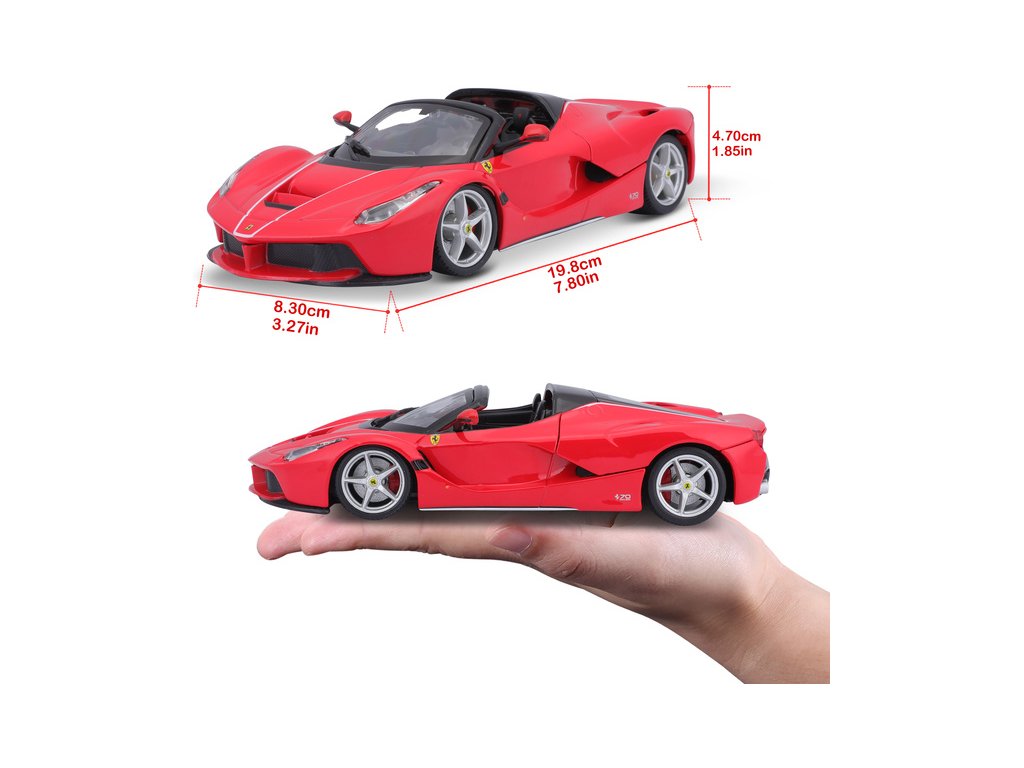 Kovový model auta 1:24 Bburago 18-26022 Ferrari LaFerrari Aperta nejen pro sběratele. Má otevírací kapotu a natáčení kol volantem je plně funkční. Barva modelu je červená a je přibližně 18 cm velký.