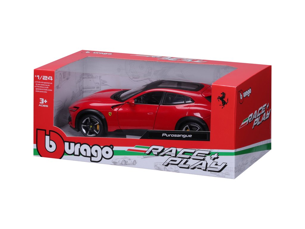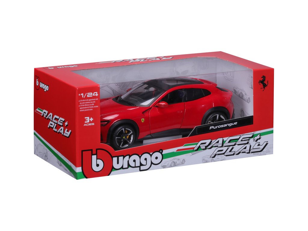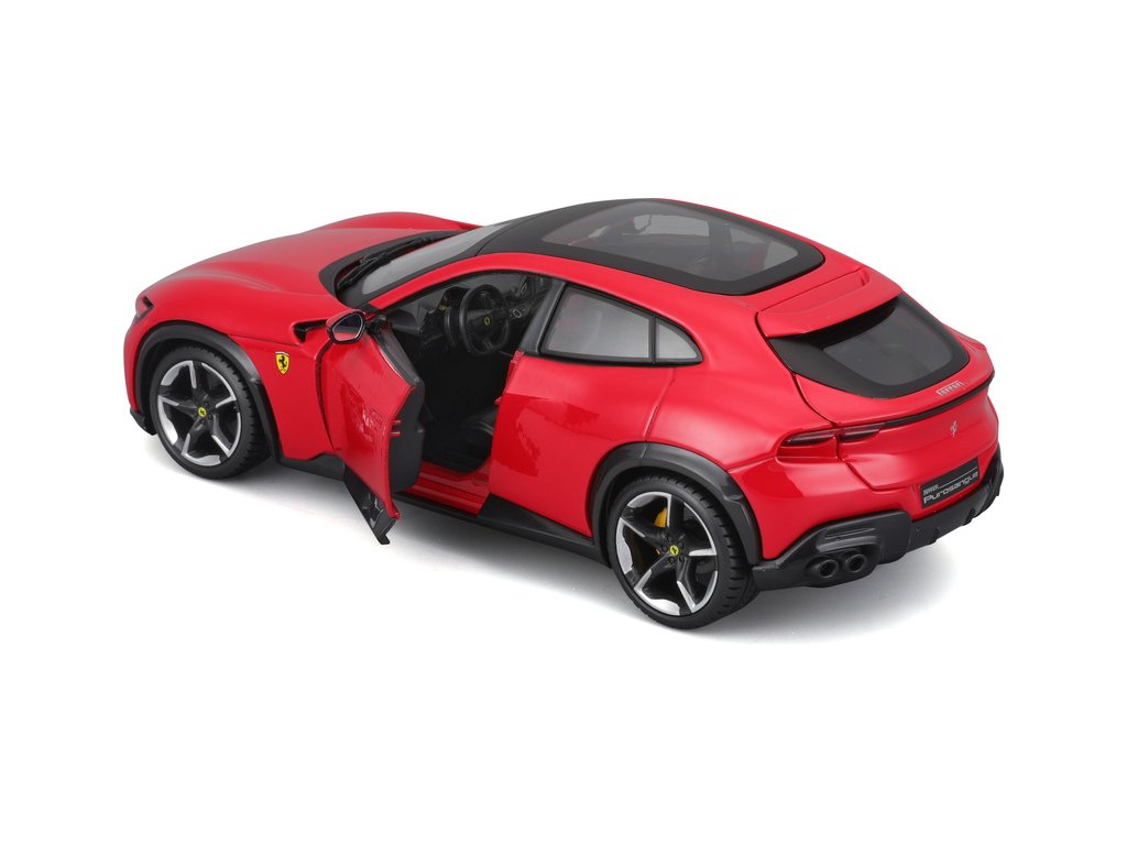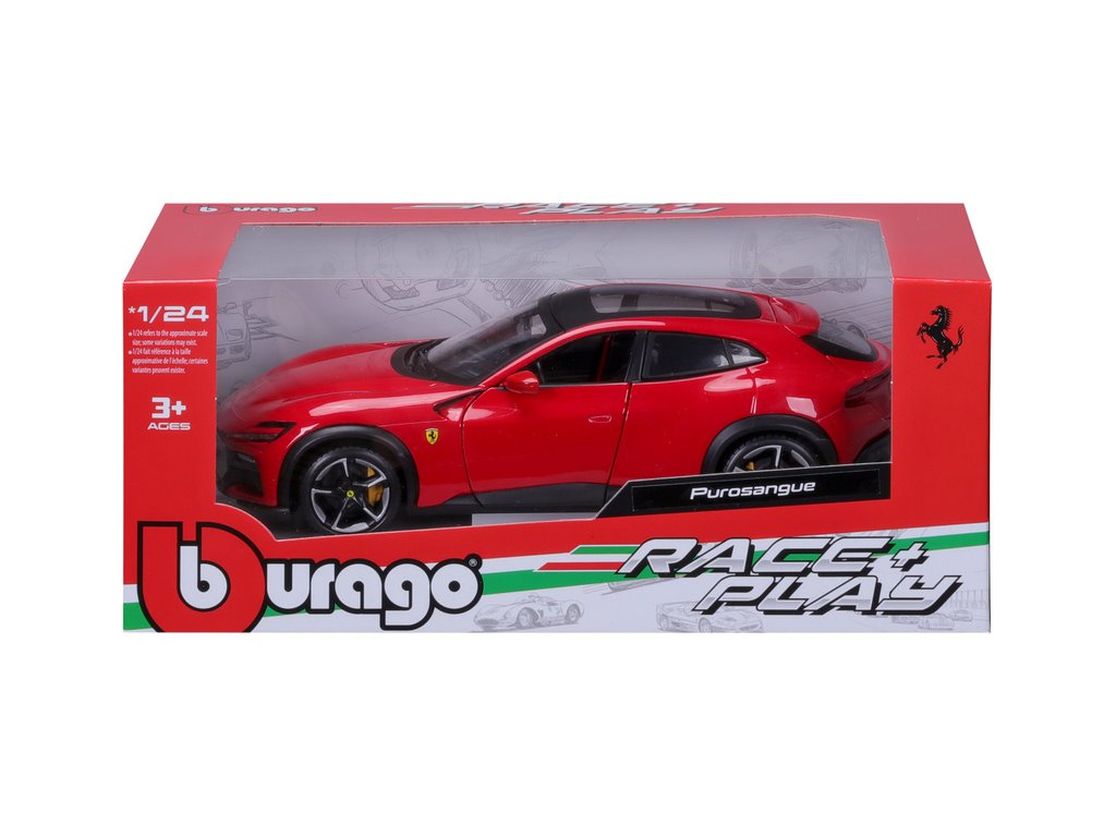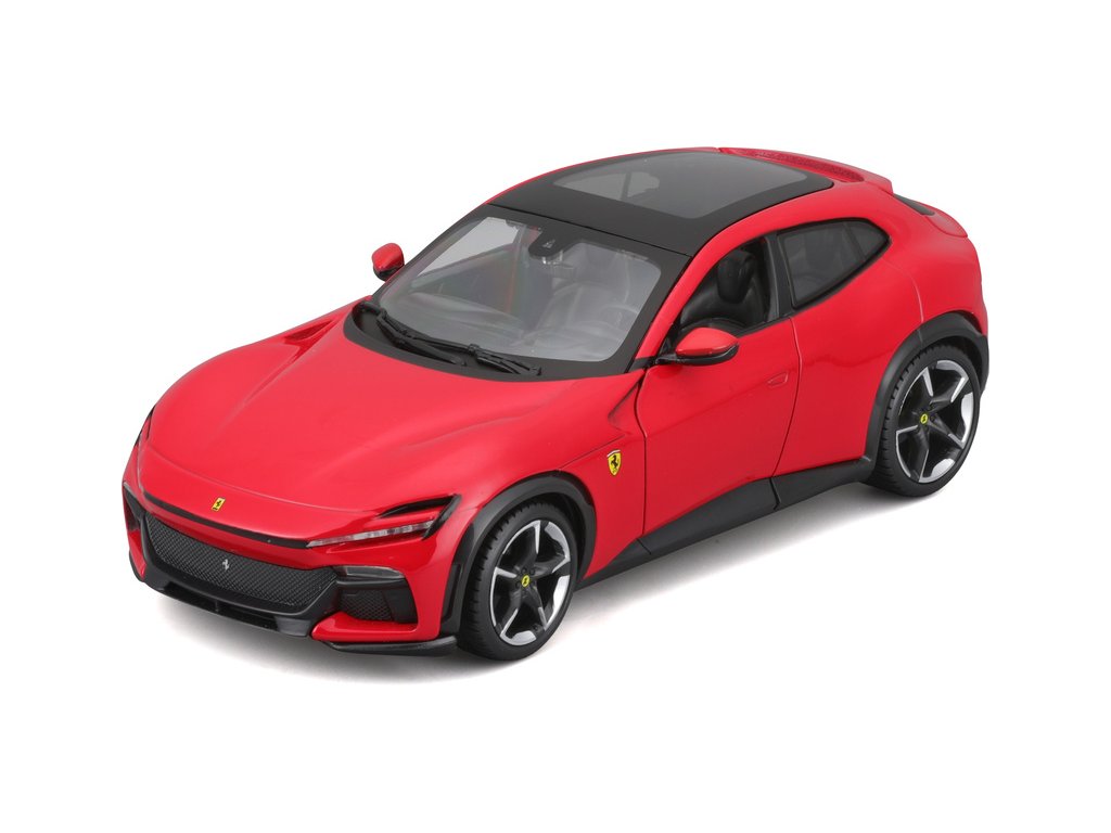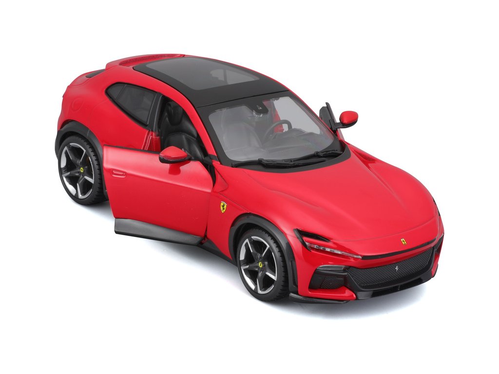 Kovový model auta v měřítku 1:24 Bburago 18-26030 Ferrari Purosangue nejen pro sběratele. Detailní provedení, přívětivá cena. Model je asi 17 cm velký a má červenou barvu.
