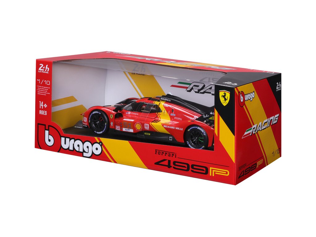 Kovový model auta Ferrari Racing 499P v měřítku 1:18 nejen pro sběratele od Bburaga. Detailní provedení, přívětivá cena, barva #51, délka přibližně 24 cm.