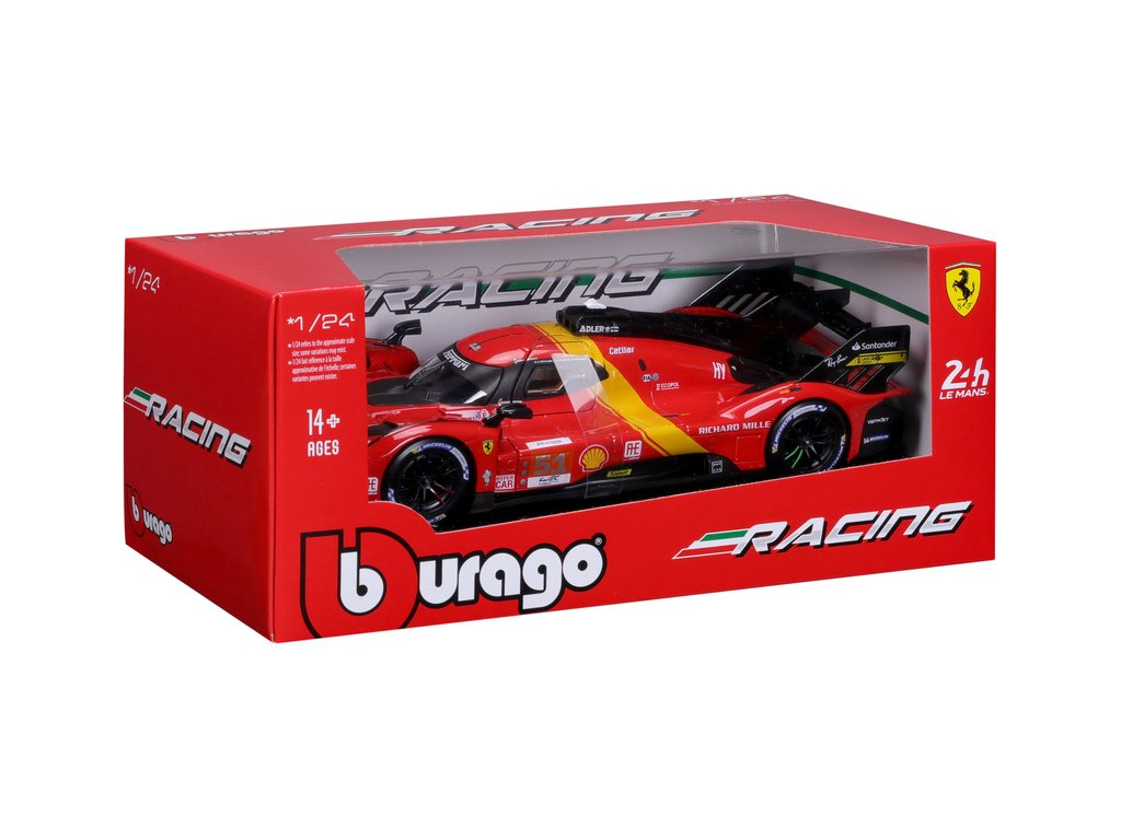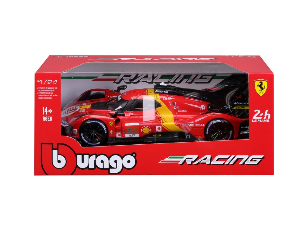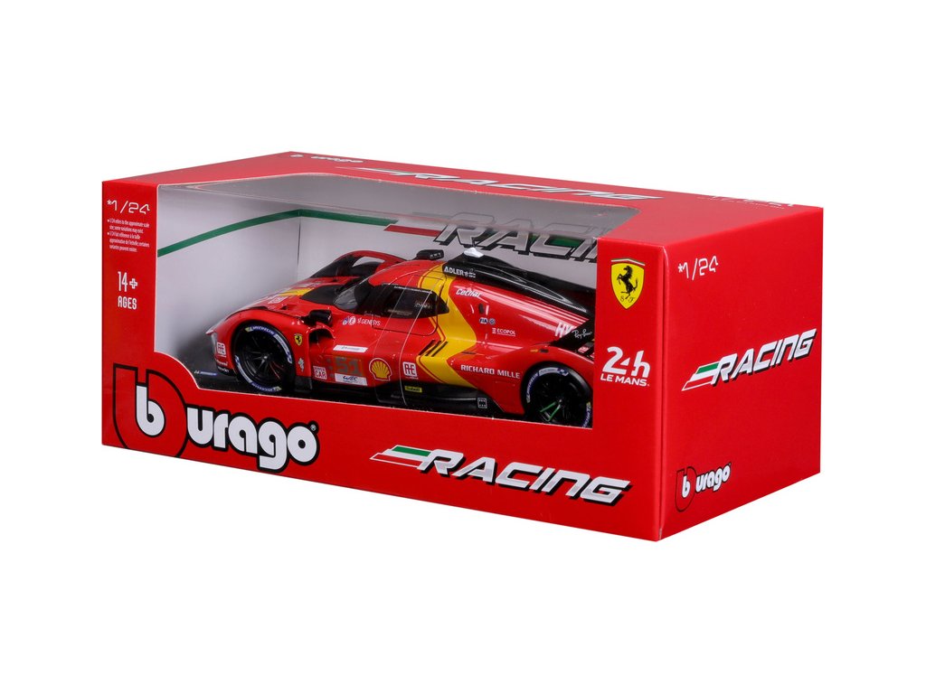 Kovový model auta Ferrari Racing 499P v měřítku 1:24 nejen pro sběratele od Bburaga. Detailní provedení, přívětivá cena, barva #51, délka přibližně 19 cm.