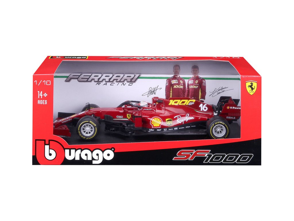 Kovový model Bburago 18-16808 Ferrari F1 SF1000 ze sezóny 2020 v měřítku 1:18 nejen pro sběratele. K dispozici auto #16 Charles Leclerc. Barva Ferrari červená.