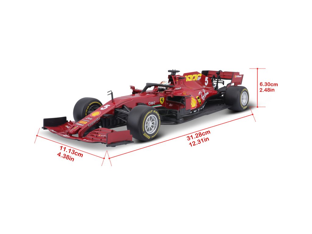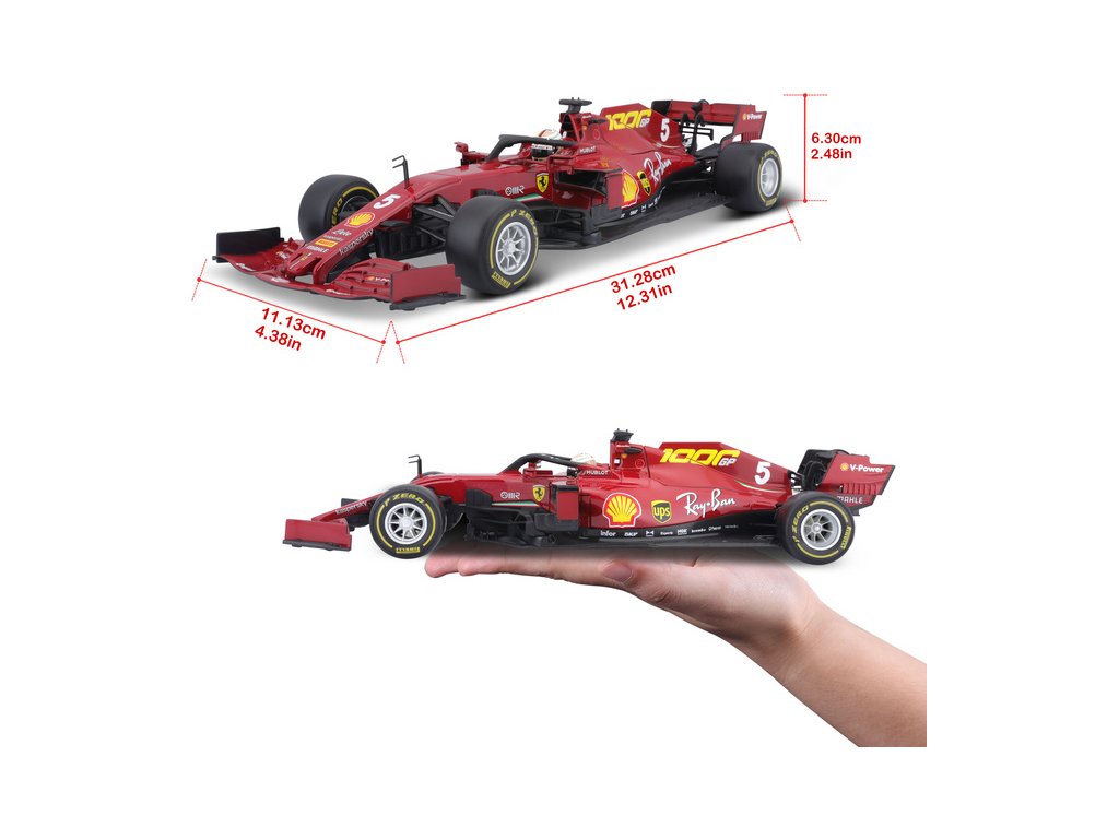 Kovový model Bburago 18-16808 Ferrari F1 SF1000 ze sezóny 2020 v měřítku 1:18 nejen pro sběratele. K dispozici auto #5 Sebastian Vettel. Barva tradiční Ferrari červená v detailním provedení. Model je přibližně 28 cm velký.
