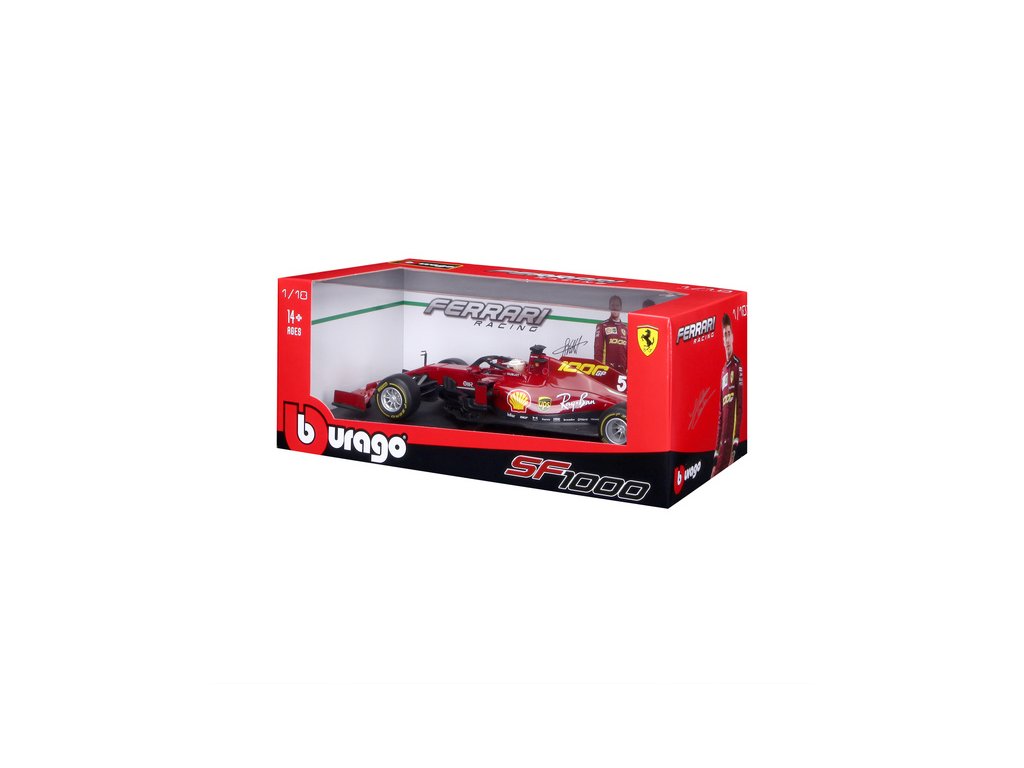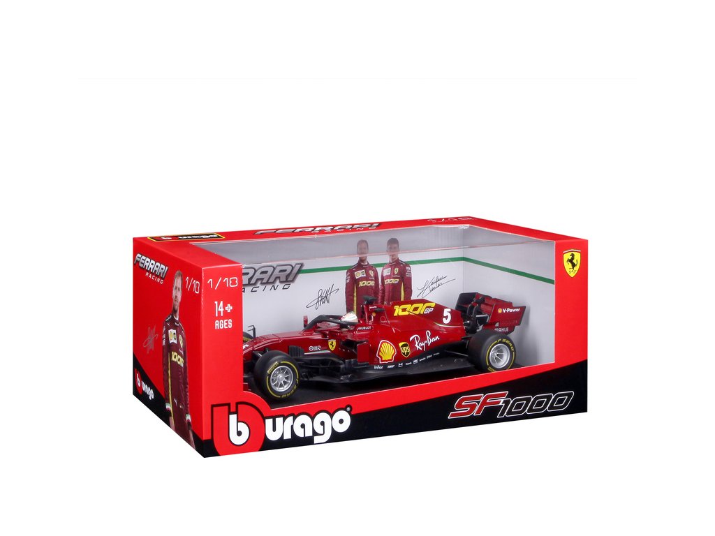 Kovový model Bburago 18-16808 Ferrari F1 SF1000 ze sezóny 2020 v měřítku 1:18 nejen pro sběratele. K dispozici auto #5 Sebastian Vettel. Barva Ferrari červená.