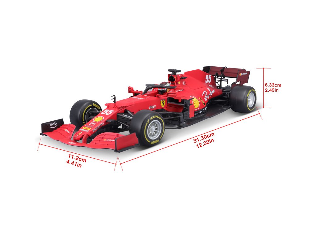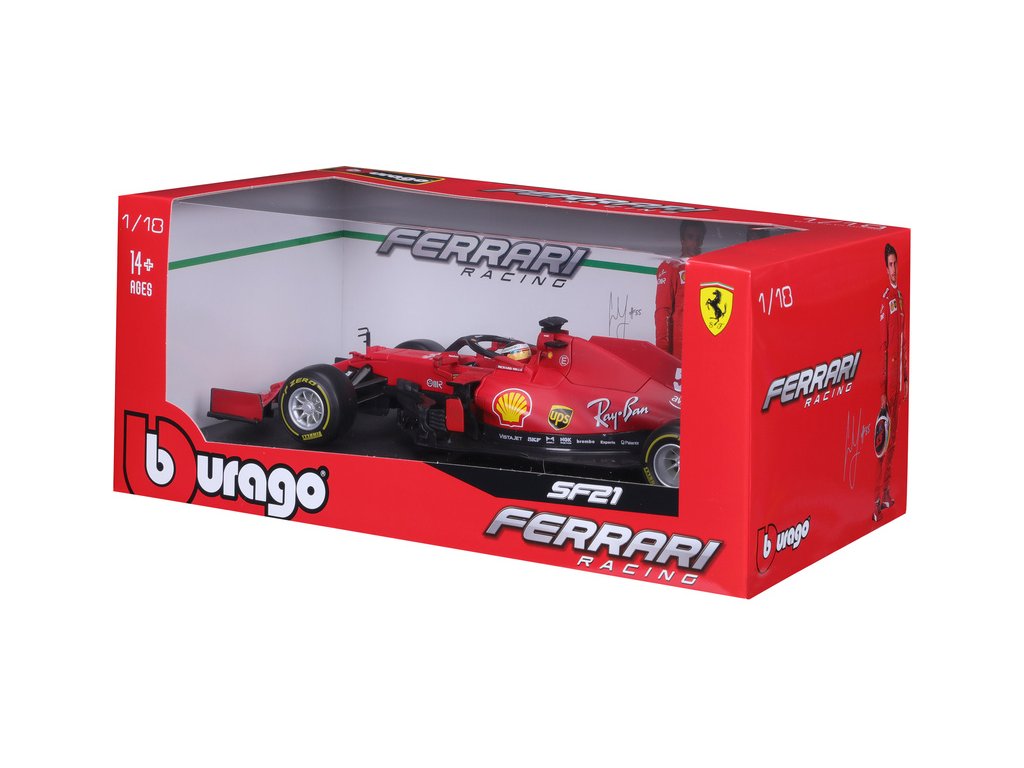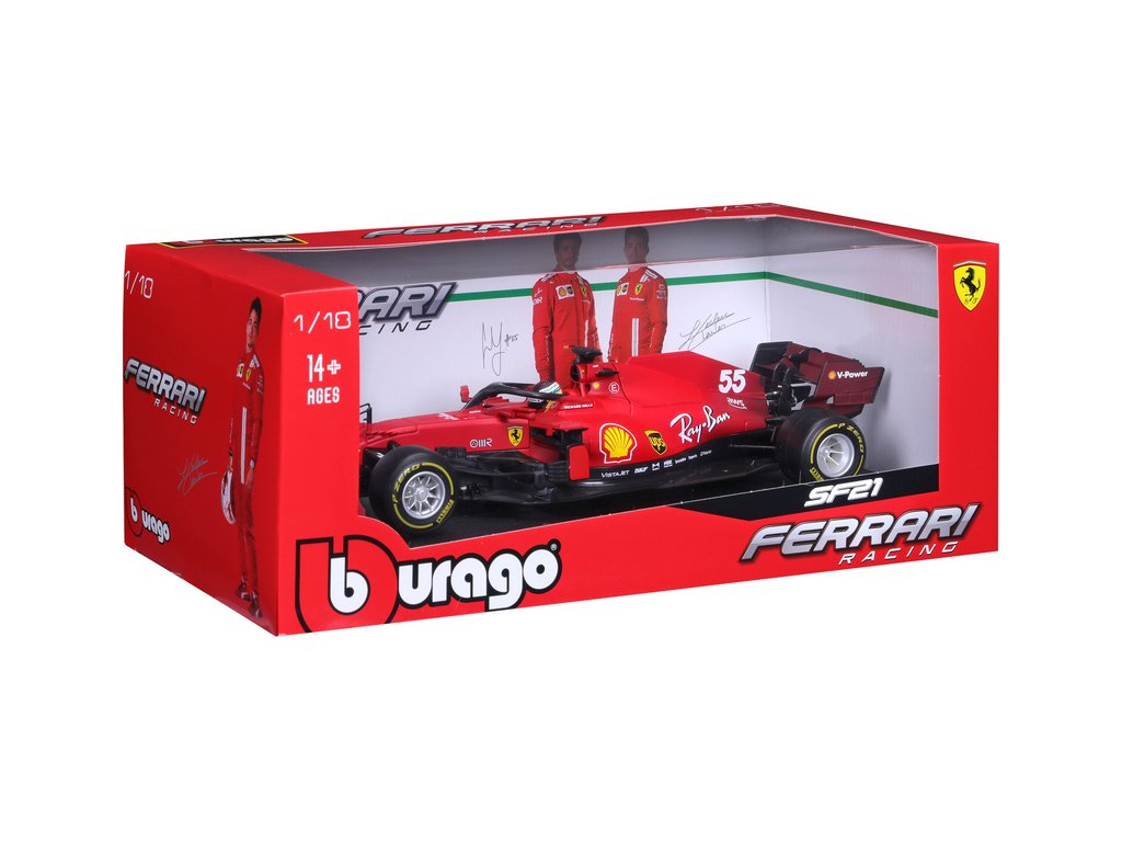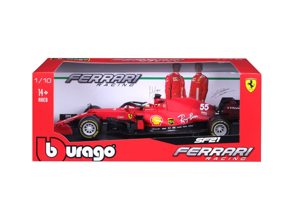 Kovový model auta 1:18 Bburago 18-16809 Ferrari SF21 ze sezóny 2021 nejen pro sběratele. K dispozici auto #55 Carlos Sainz. Barva tradiční Ferrari červená a je přibližně 28 cm velký.