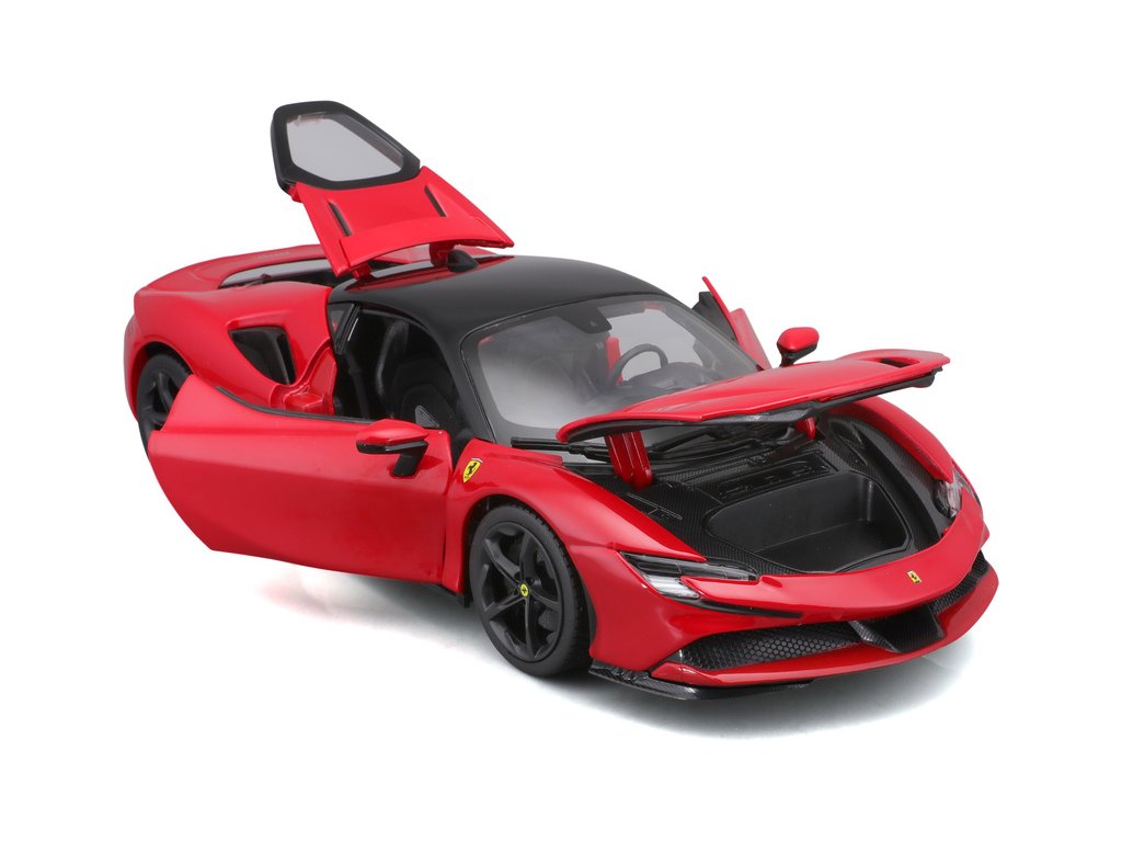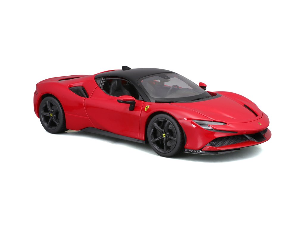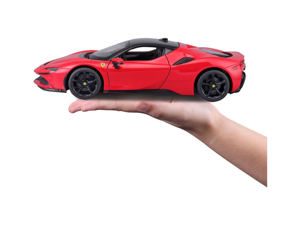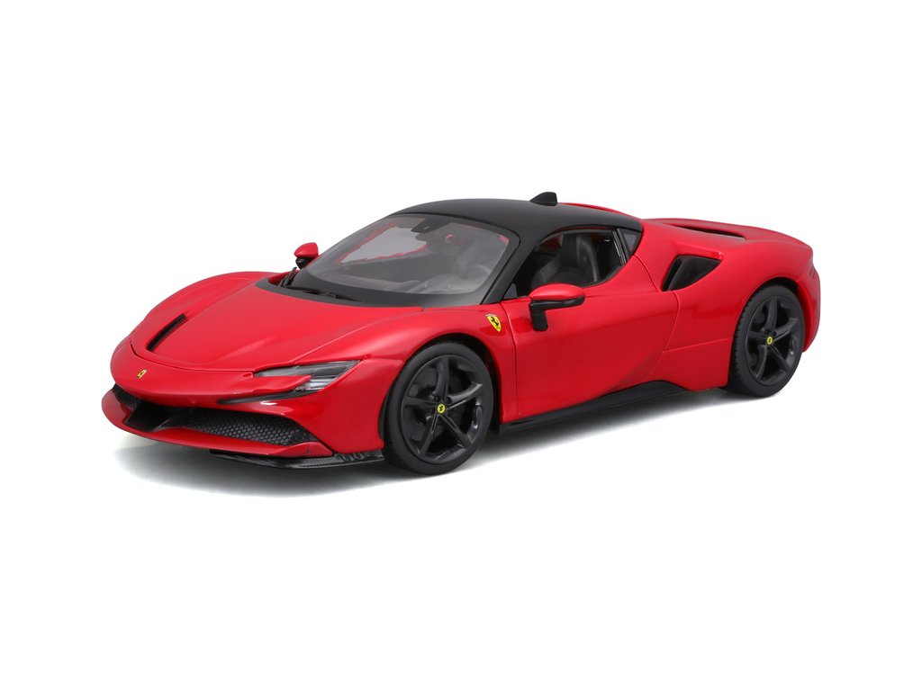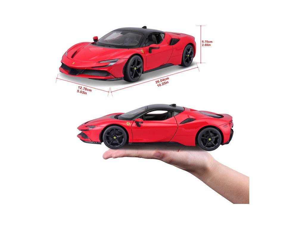 Kovový model auta 1:18 Bburago 18-16015 Ferrari SF90 Stradale, nejen pro sběratele. Model je v detailním provedení. Barva modelu je červená a přibližně 24 cm velký.