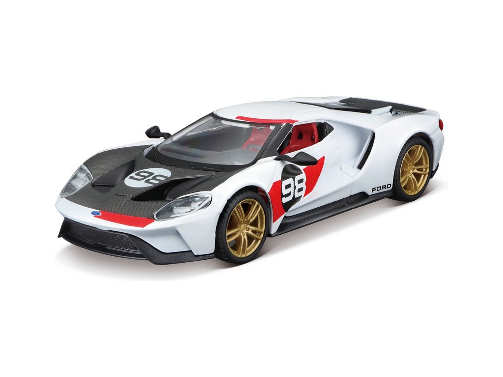 Kovový model auta 1:32 Bburago 18-41165 Ford GT 2021 #98 Heritage Edition nejen pro sběratele. Model je v černobílé barvě se závodním číslem.