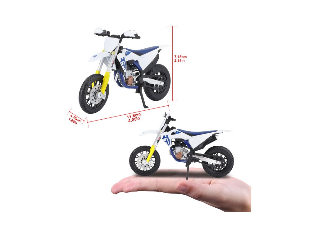Model Bburago 18-51087 terénního motocyklu Husqvarna FS 450 Supermoto je detailně proveden. Ideální dárek pro kluky i dospělé.