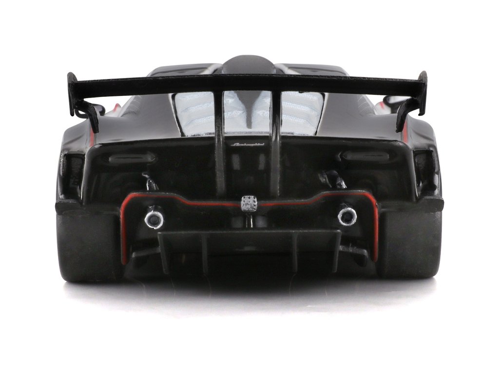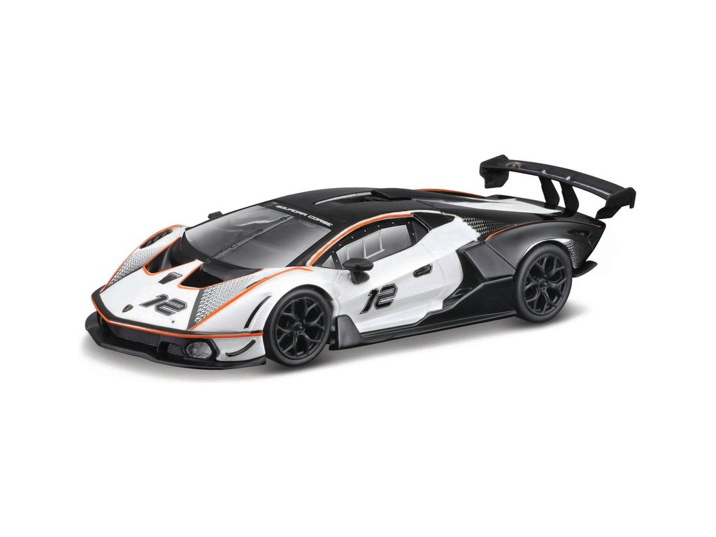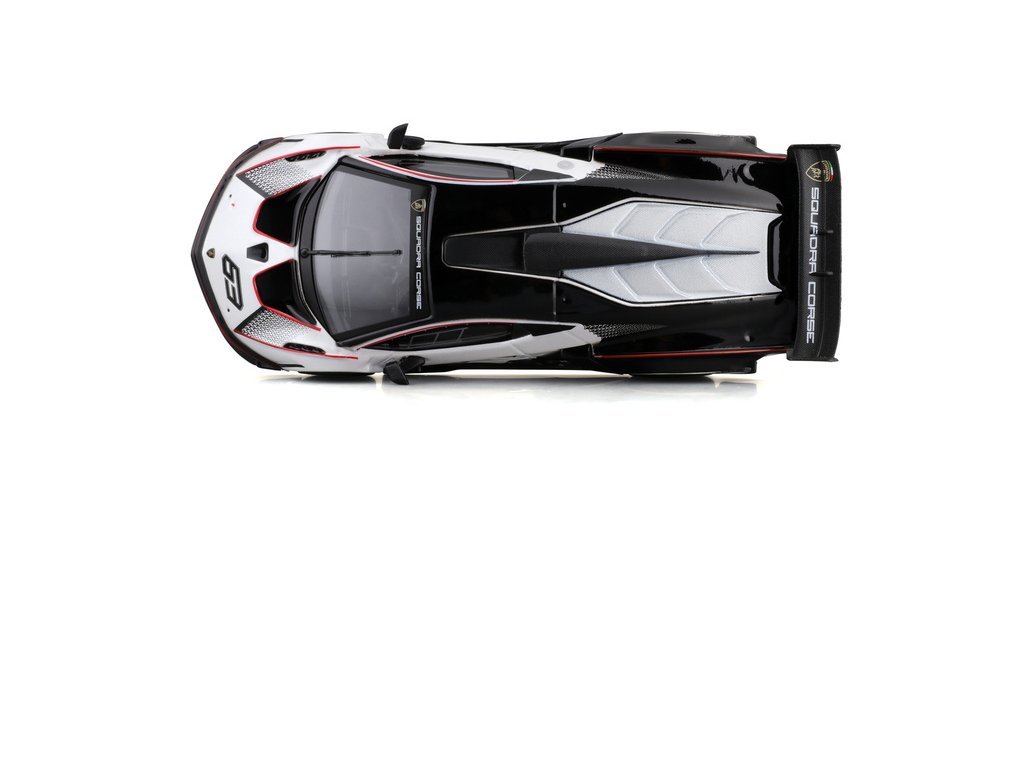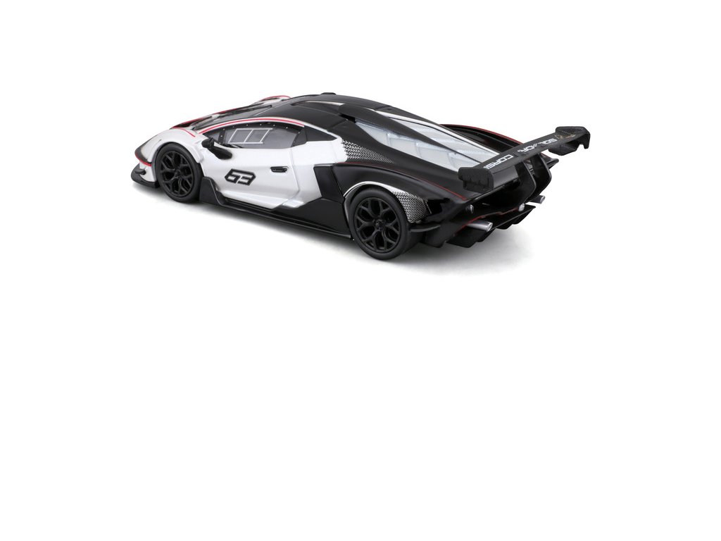 Kovový model auta 1:32 Bburago 18-41161 Lamborghini Essenza SCV12 nejen pro sběratele. Model je asi 13 cm velký a má černou a bílou barvu se závodním číslem. Model je v detailním provedení, skvělá úroveň zpracování.