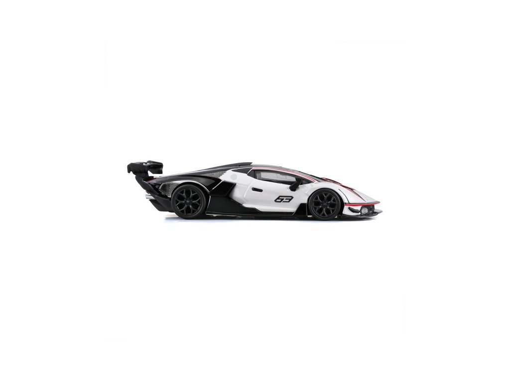 Kovový model auta 1:32 Bburago 18-41161 Lamborghini Essenza SCV12 nejen pro sběratele. Model je v černé a bílé barvě se závodním číslem.