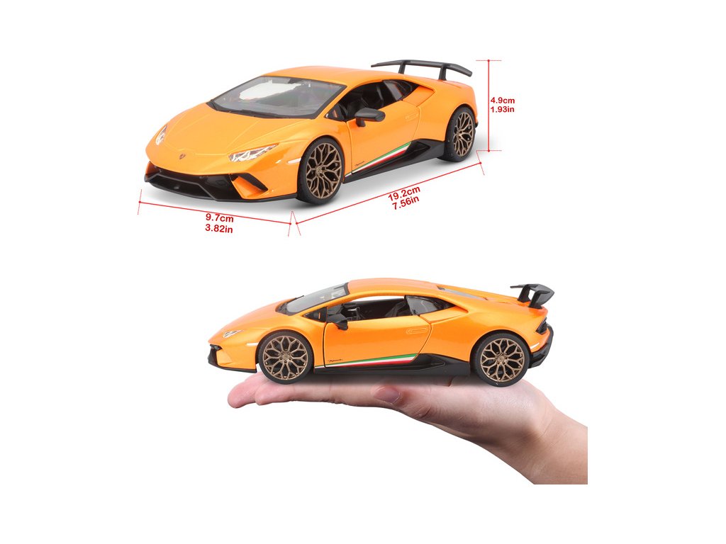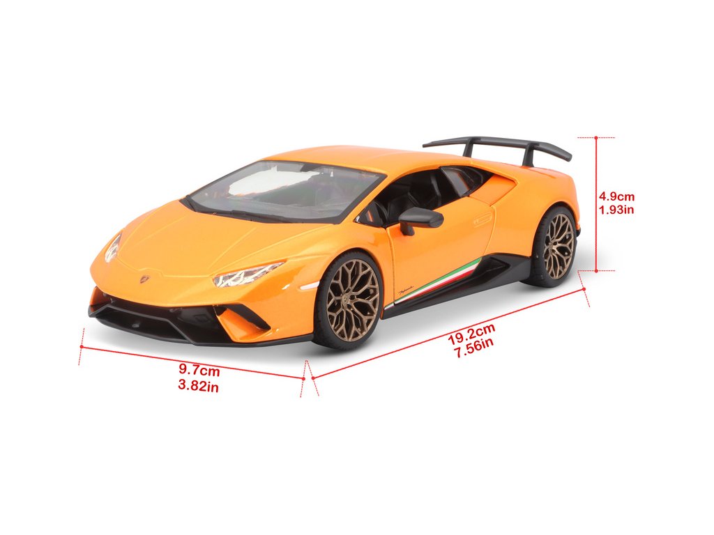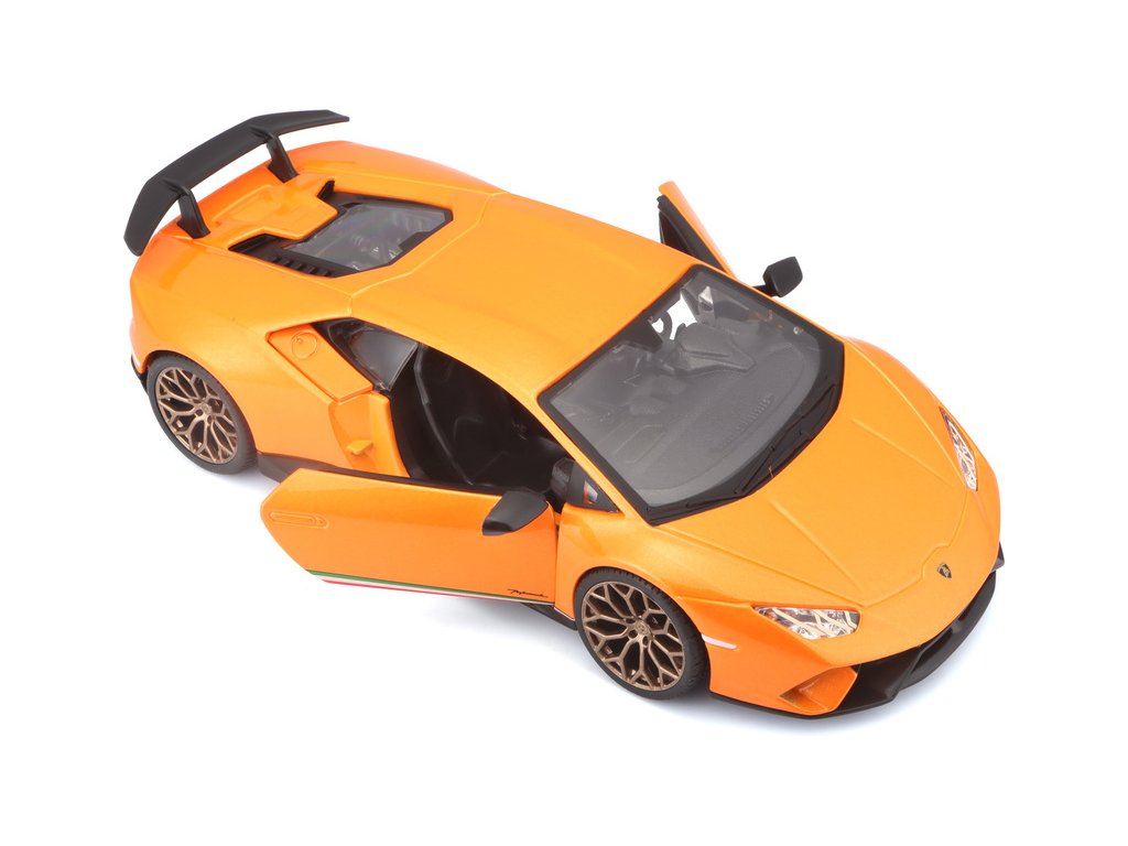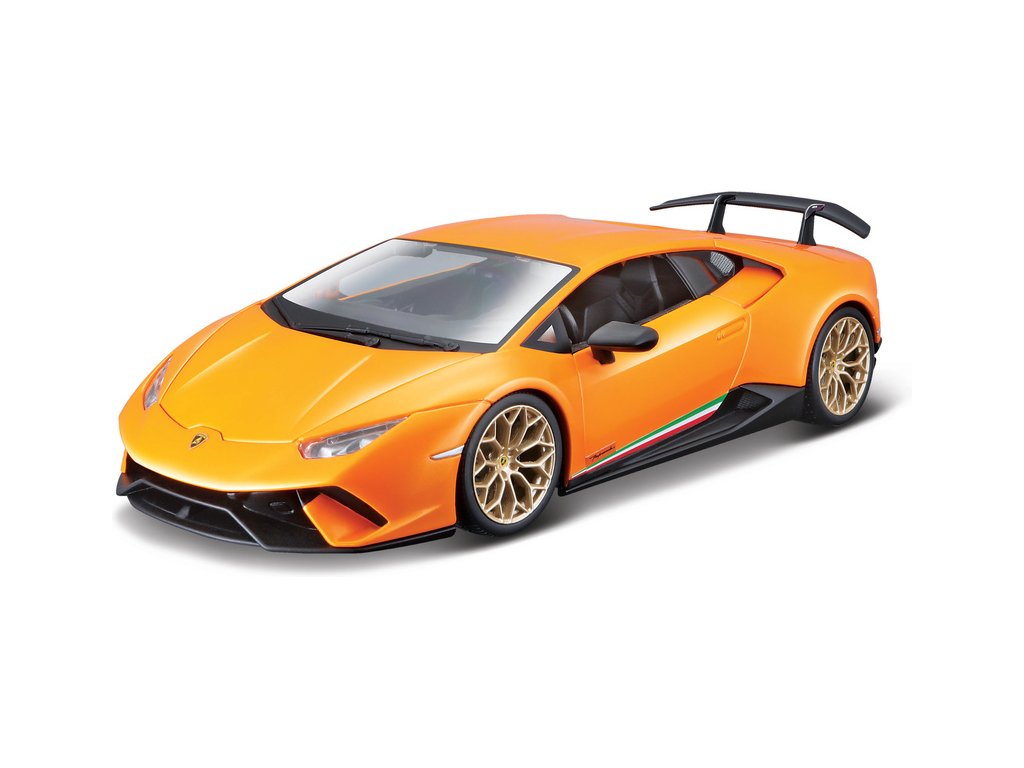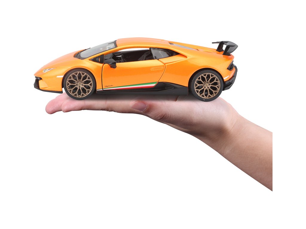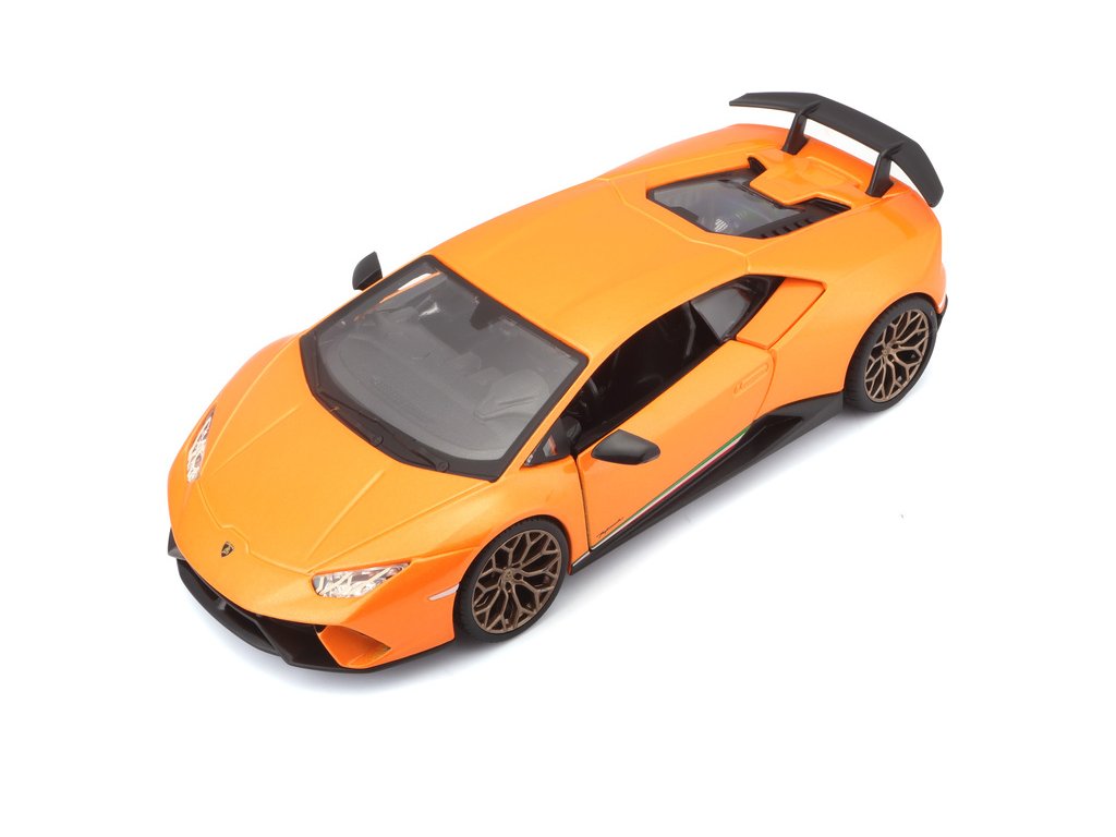 Kovový model auta 1:24 Bburago BB18-21092 Lamborghini Huracan Performante nejen pro sběratele. Má otevírací dveře a je v detailním provedení. Barva modelu je oranžová a je přibližně 18 cm velký.