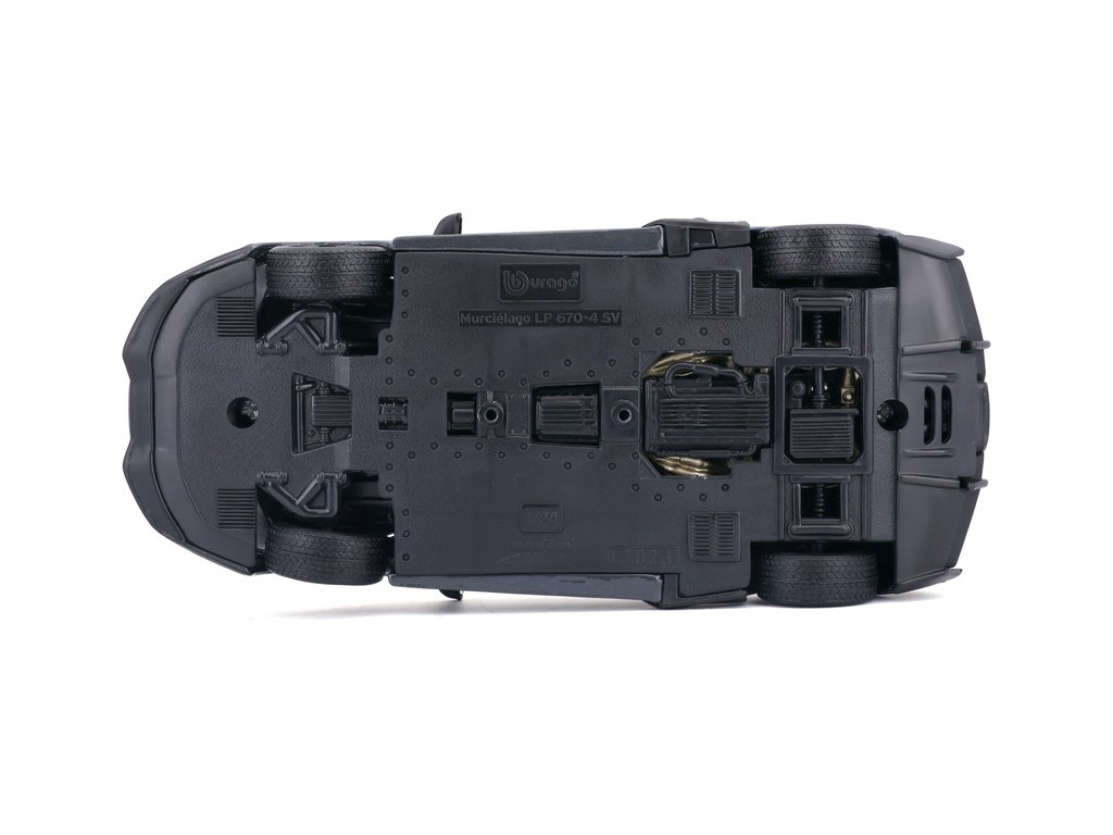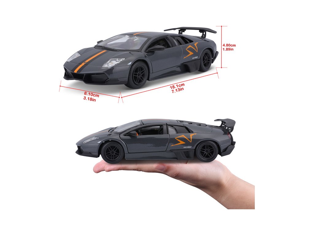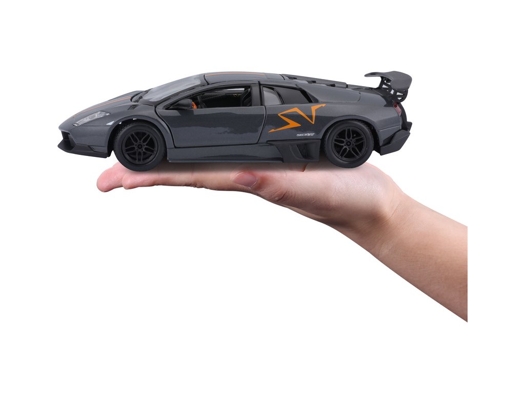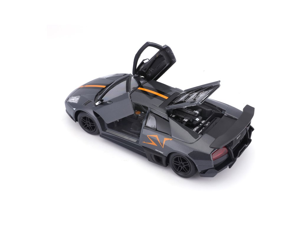 Kovový model auta 1:24 Bburago 18-22120 Lamborghini Murciélago LP 670-4 SV China Limited Edition nejen pro sběratele. Má otevírací dveře a kapotu, natáčení kol volantem je plně funkční. Barva modelu je šedá metalíza a velký je přibližně 19 cm.