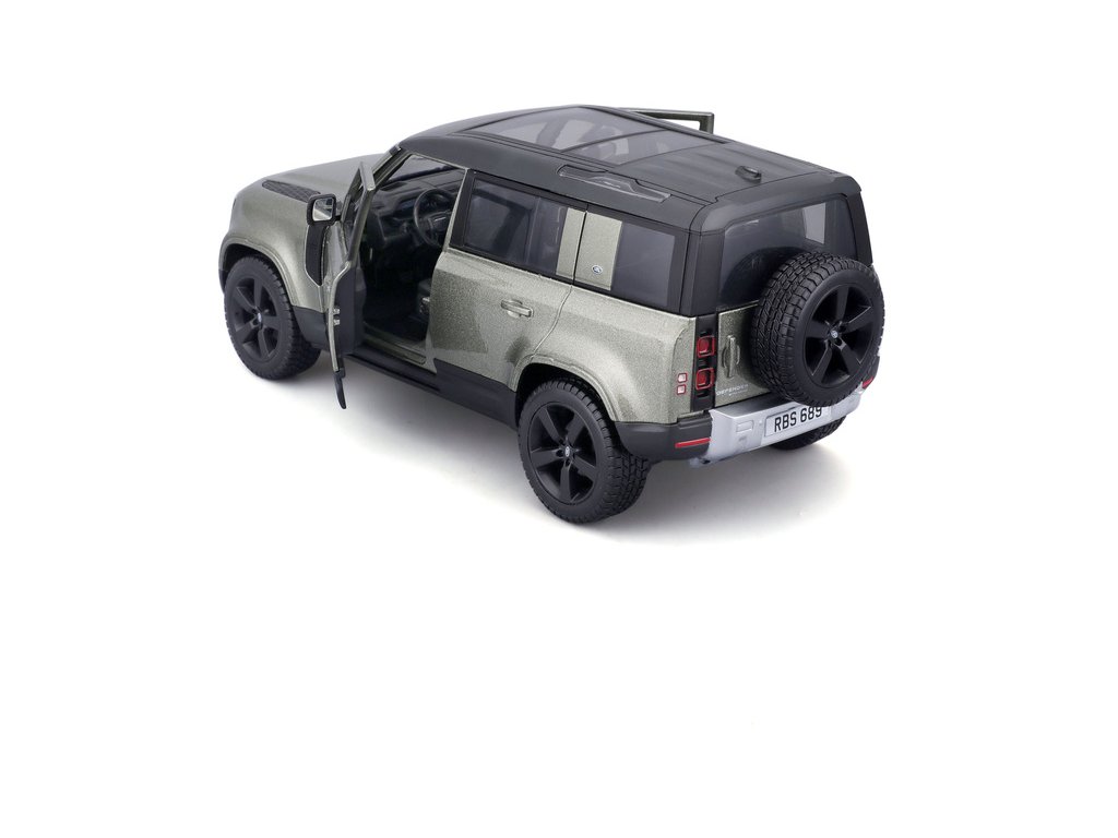 Kovový model auta 1:24 Bburago 18-21101 Land Rover Defender 110 nejen pro sběratele. Má otevírací dveře, barva modelu je zelená.