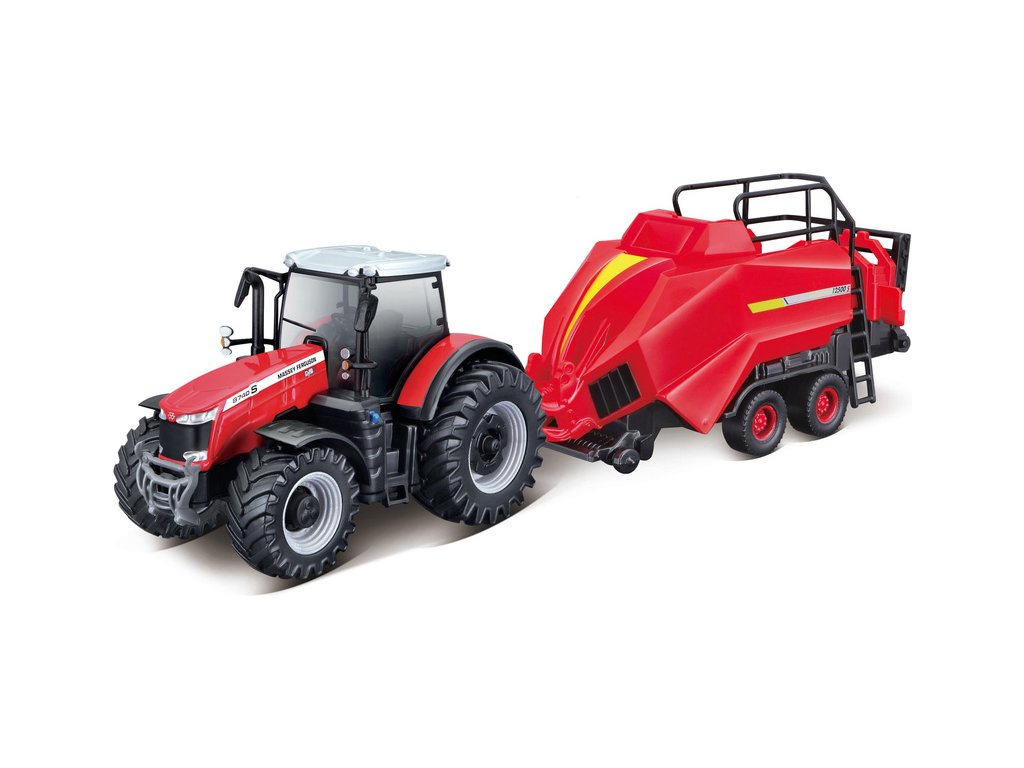 Model zemědělského traktoru Bburago 18-31667 - Massey Ferguson 8740S s lisem na balíky. Je vyroben z kovových a plastových dílů. Model má pryžové kolečka a detailní zpracování. Model v červené barvě je přibližně 13 cm velký.