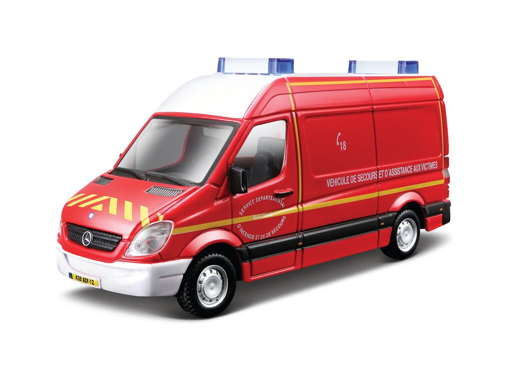 Mezi dětmi jsou kovové modely užitkových vozů velmi populární a jistě si oblíbí i Mercedes-Benz Sprinter v měřítku 1:50 od Bburaga. Model má délku 12 cm, karosérie je vyrobena z kovu a obsahuje spoustu detailů. Červená barva - hasiči.