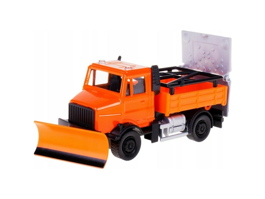Kovový model Bburago 18-32263 nákladní auto s pluhem nejen pro sběratele. Je vyroben z kovových a plastových dílů. Model má pohyblivé rameno s pluhem, pryžové pneumatiky, detailní zpracování. Barvu má oranžová.