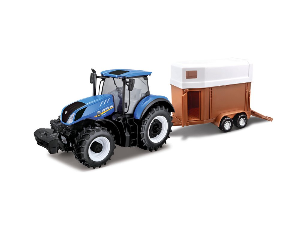 Model Bburago 18-44069 - traktor New Holland T7.315 s přívěsem v měřítku 1:32 je vyrobený z kovových a plastových dílů. Model traktoru má odjímatelnou kabinu a je v detailním provedení. Na zadní závěs se připojí uzavřený přívěs, který má otevíratelné dveře a zadní nakládací rampu. Traktor je přibližně 17 cm velký, vlečka je přibližně 13 cm velká.
