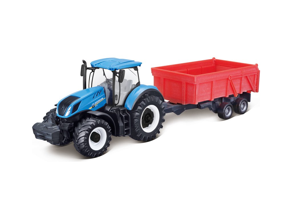 Model zemědělského traktoru Bburago 18-31658 - New Holland T7.315 s vlečkou. Je vyroben z kovových a plastových dílů. Model má pryžové kolečka na setrvačník, odjímatelnou kabinu. Traktor s vlečkou je přibližně 25 cm velký.