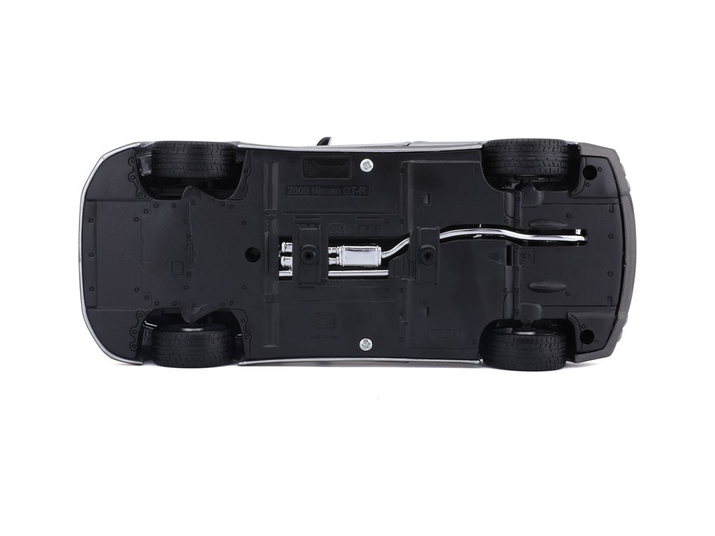 Kovový model auta 1:18 Bburago 18-12079 2009 Nissan GT-R nejen pro sběratele. Má otevírací dveře a kapotu, natáčení kol volantem je plně funkční. Barva modelu je stříbrná.